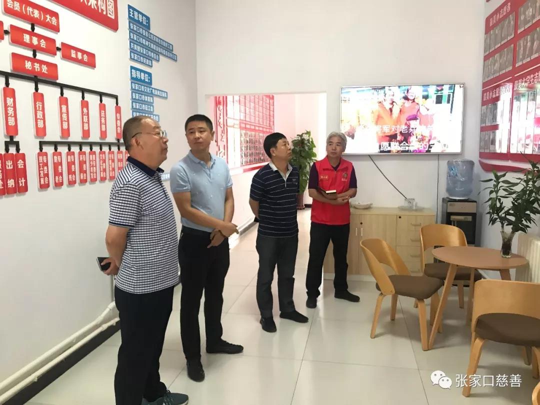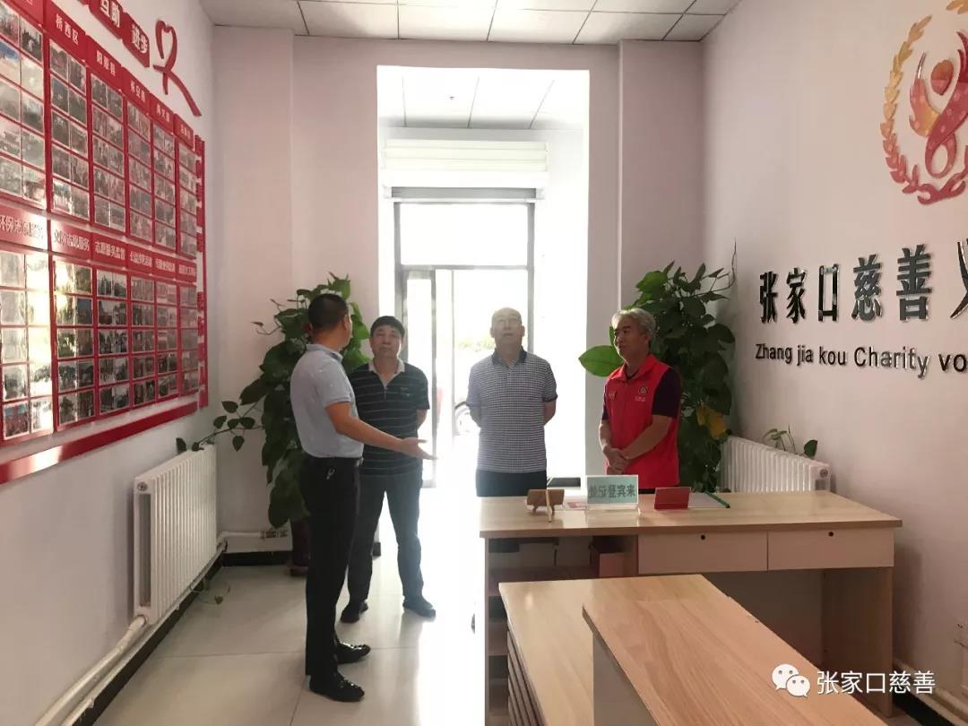 2019年8月29日上午,张家口市民政局调研员 刘润江等一行三人莅临张家口慈善义工联合会指导工作。