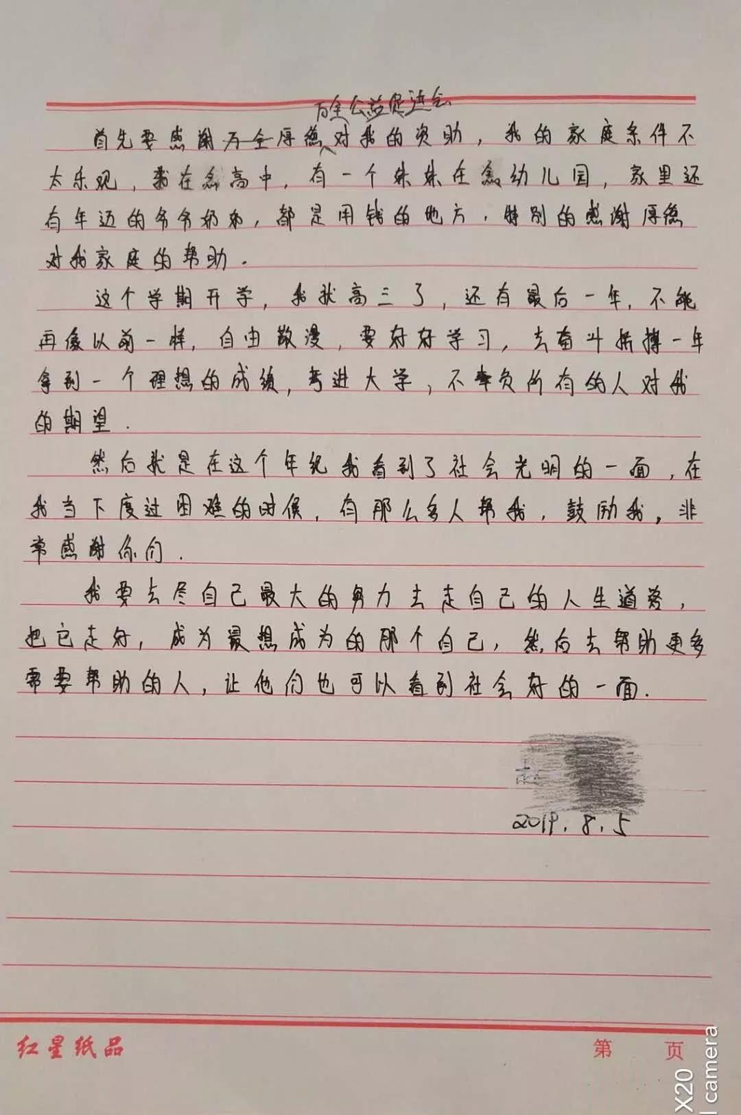 这是万全区一户贫困家庭,育有两女,父亲2017年因得癌症去世,母亲无工作没有稳定收入,只能靠打零工补贴家用,这种情况下,大女儿除了帮母亲干家务外,会利用一切时间看书、学习,当时大女儿正准备上高一,二女儿念幼儿园,家中还有年迈的爷爷奶奶,正是需要用钱的时候,一家人一筹莫展......厚德万全公益促进会得知这一消息后,心急如焚,想尽一切办法想要帮助这个孩子,想要帮她圆上学梦,终于,在孩子高一开学前几天,有众多好心人(不愿透露姓名)愿意一起资助这姐妹俩上学,大女儿才能继续求学,今年已是第三年,孩子马上就升高三了,对于好心人的帮助,孩子心中充满感恩,对于社会,孩子想要回馈。