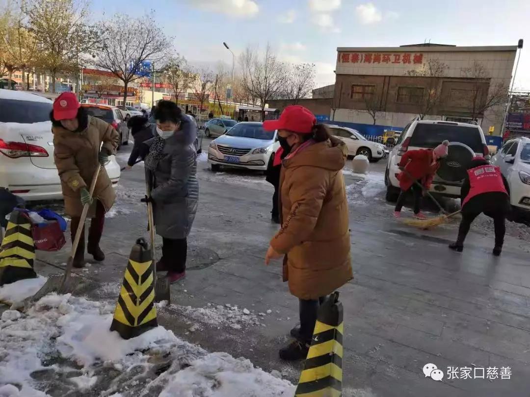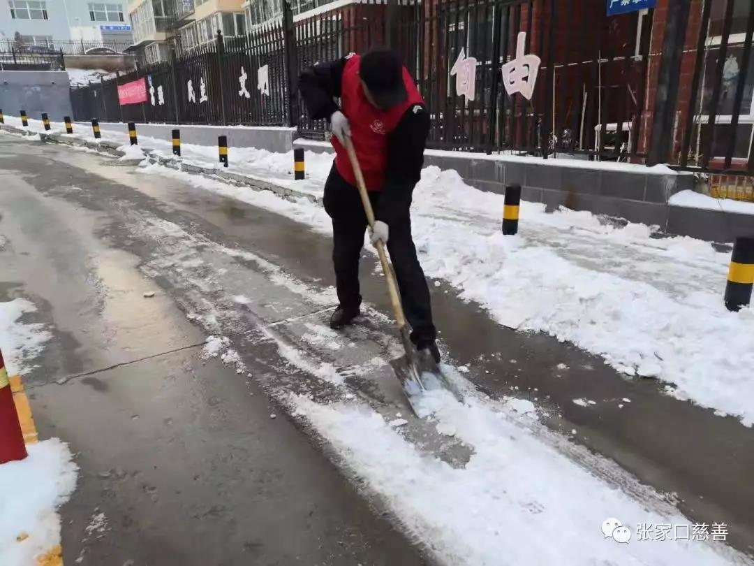 周末的雪,让城市披上了银装,整座城市美出了高度。雪景给人们带来了愉悦心情的同时,也给出行的人们带来了不便。慈善义工联合会发出号召,迅速组织安排扫雪除雪,保证出行群众的安全。16日上午,黄丝带爱心连霍焰队长带领李涛,李晓东等一行17人来到同人创业园小区打扫积雪,其中李涛还是残疾人,李晓东是大病患者,但是志愿者老师们都是积极主动的干活,不怕苦不怕累,中午吃完饭又接着干,终于在下午四点多完成了清扫工作。