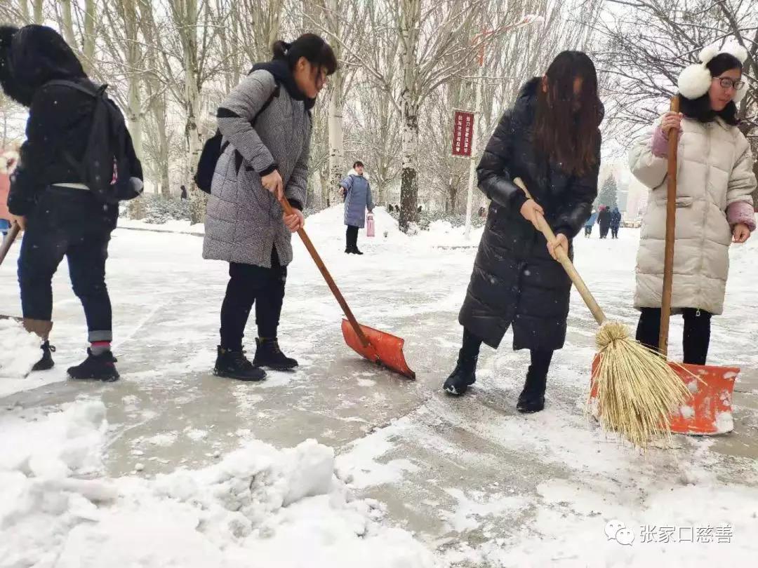 2019年12月16日,张家口市迎来了第二场雪,没有了初雪的惊喜但仍然有着欢乐,漫天飞舞的雪花给原本结冰的道路堆积起了一层厚厚的积雪,给大家的出行带来了诸多不便。为尽快消除积雪给学校道路交通带来的困扰,AIR志愿服务队本着“服务校园”的宗旨,于2019年12月16日上午开启了“不忘初心,铲雪为民”志愿除冰铲雪百团大战活动。