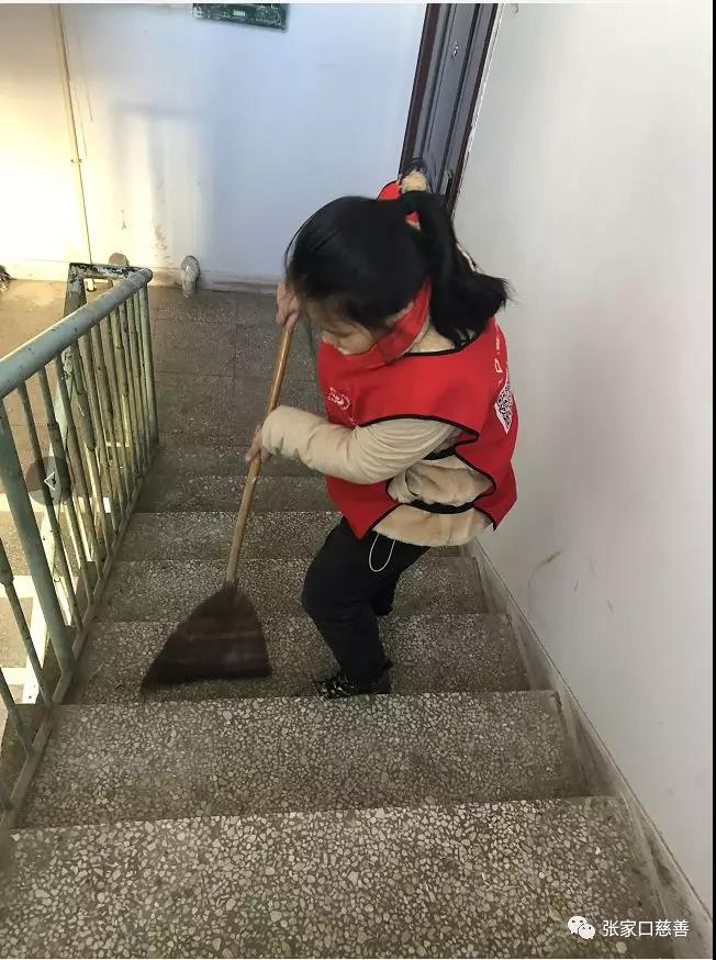 2019年12月13日,中午吃过午饭后,由王轲母亲闫晓娟带领雷锋队小义工们给钻石北路8号楼,原财经学校家属楼清扫楼道。参加公益劳动的小义工有:王轲、王萨、张新雨、左雨璇、谭子涵、冯璟琦,他们均属于宝善街小学学生。
