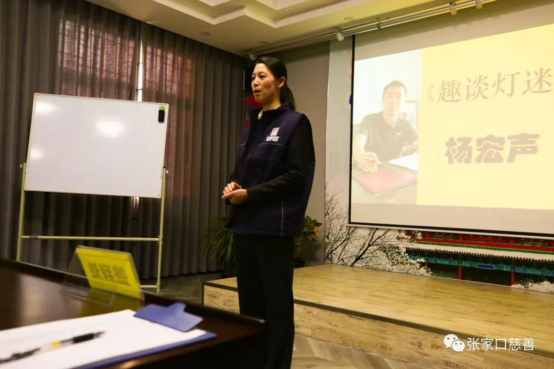 杨老师从四个方面讲述灯谜:1.灯谜的起源和发展;2.张家口的谜事;3.灯谜特点概述;4.如何猜灯谜。