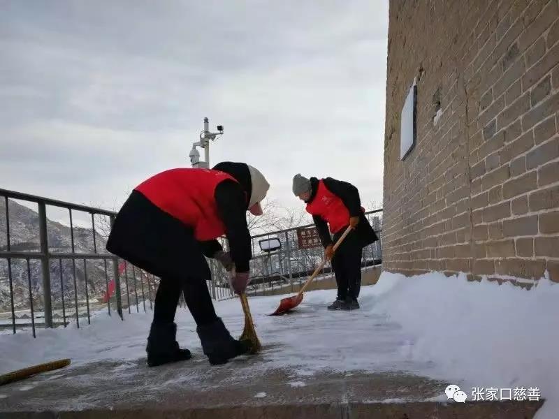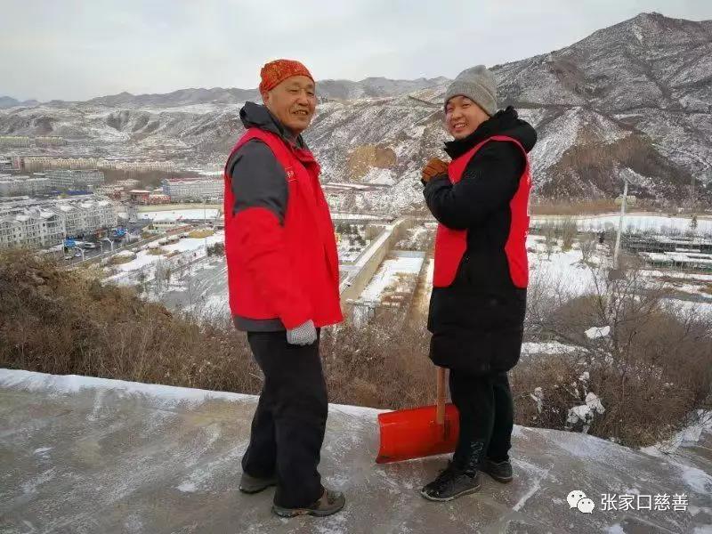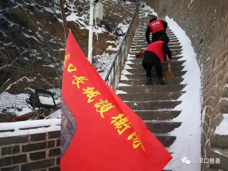 张家口长城护卫队于2020年1月6日下午三点至五点,在大境门景区清扫步道雪,从景区内登高台阶到第一个烽台处。他们是:李润才、李默然、Le Rouge。
