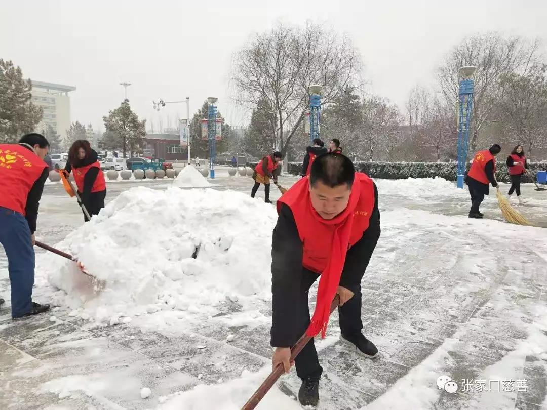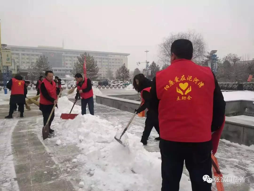 2020年1月6日早上,连夜瑞雪纷飞,阳原县城变成了银装素裹的世界,也给群众的出行造成了极大的困难。为方便群众出行,阳原爱在泥河湾互助会积极响应团县委号召,常务副会长闫海龙、副会长李晓燕、妇联主任秦玉梅、后勤部张进荣、东堡团队杨东亮等,在第一时间组织发动志愿者开展在泥河湾文化广场义务扫雪活动。由于天气寒冷,志愿者们都冻得手脸通红,但是谁也没说一句累,没喊一声苦,他们手拿铁锹、扫帚等工具,扫的扫,推的推,个个努力争先,热忱投入,及时清除路面积雪,确保了周边群众的安全出行,赢得了附近群众的交口称赞,