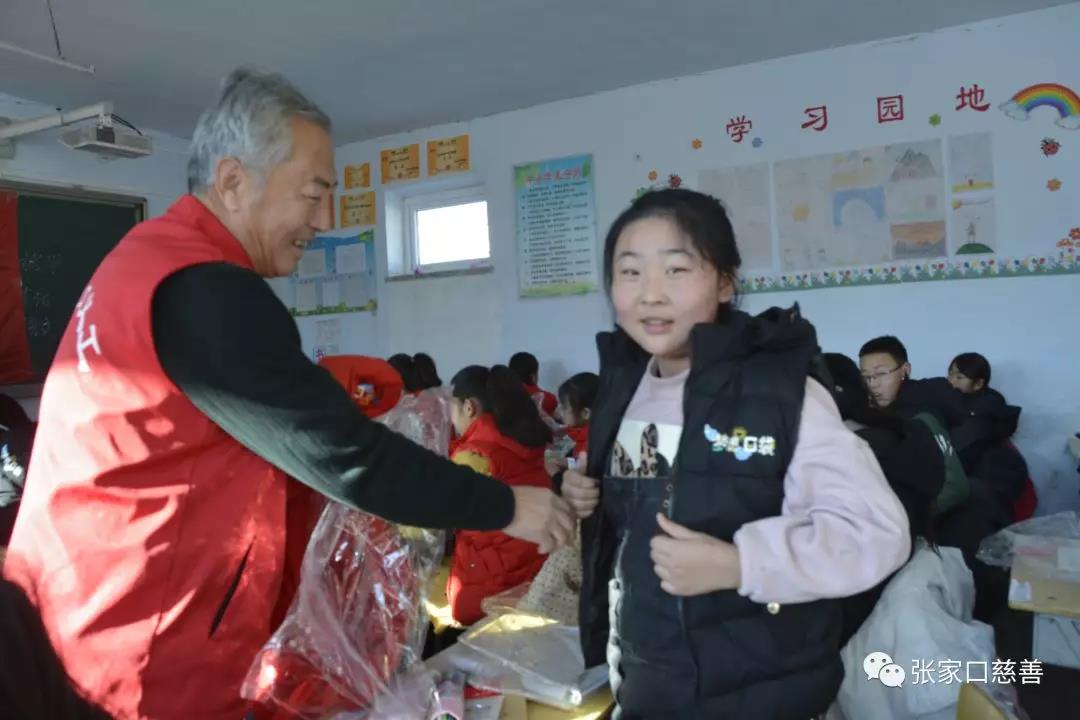 看到孩子们穿着刚刚送来的棉衣,望着孩子们开心快乐的样子,在场每个人的心里都很欣慰。张家口市桥东区东望山乡贫困人员较多,距离主城区较远,乡镇设施老旧。国家为了建设新农村付出了百般艰辛,虽比不上国家的付出,但一份小小的关怀也是大家投身公益能做到的。冬日的严寒,泥泞的道路改变不了志愿者送温暖的初心。捐赠接近尾声,大家一一握手告别,圆满完成了今天的捐赠活动!