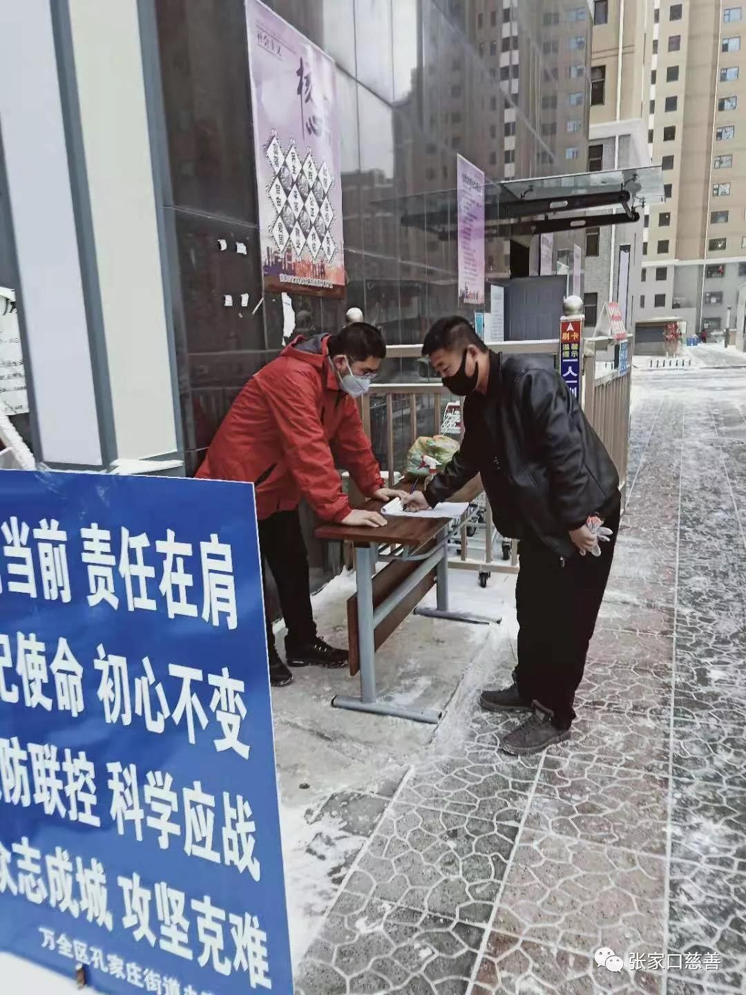 当前,全面防控新型冠状病毒感染肺炎疫情进入关键时期,为更好遏制疫情扩散蔓延,在张家口市万全区委、区政府统一指挥下,共青团张家口市万全区委组织下,连日来,万全卫城应急救援队、魅力万全公益协会、普爱公益志愿者协会、光彩事业志愿服务队、益民志愿者工作站、厚德万全志愿者协会70余名志愿者,以及大学生、社区居民积极投入、有序参与到疫情防控工作当中,用实际行动守护自己的家园。 在万全区的各个小区门口,志愿者们配合社区全面登记排查,按照分配的任务,扎实做好人员登记、卡点检查、对外来车辆劝离、对无防护人员劝导佩戴口罩等工作。用最大的努力把防控工作做得更全面、更扎实、更细致、更到位。