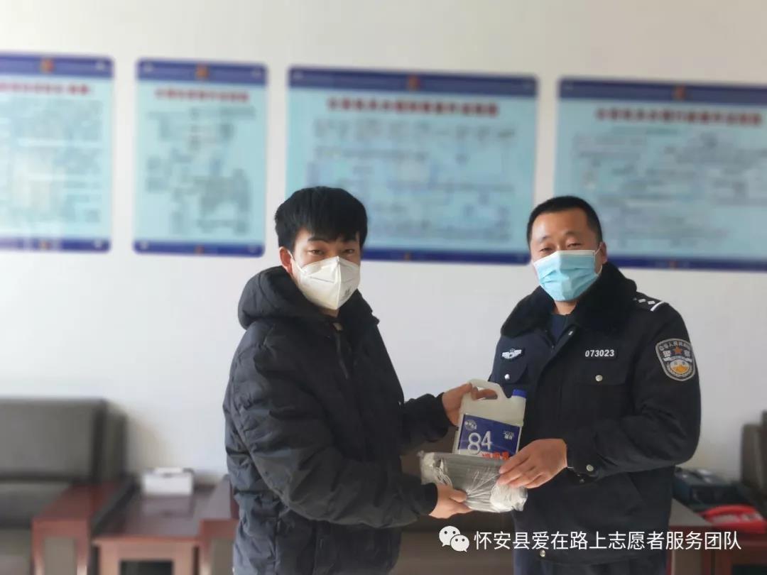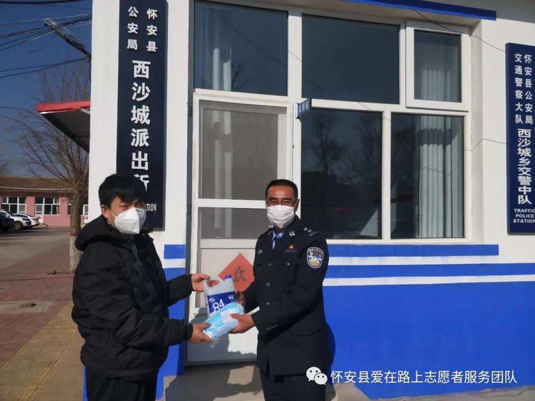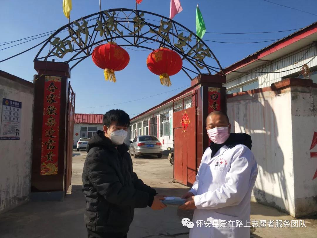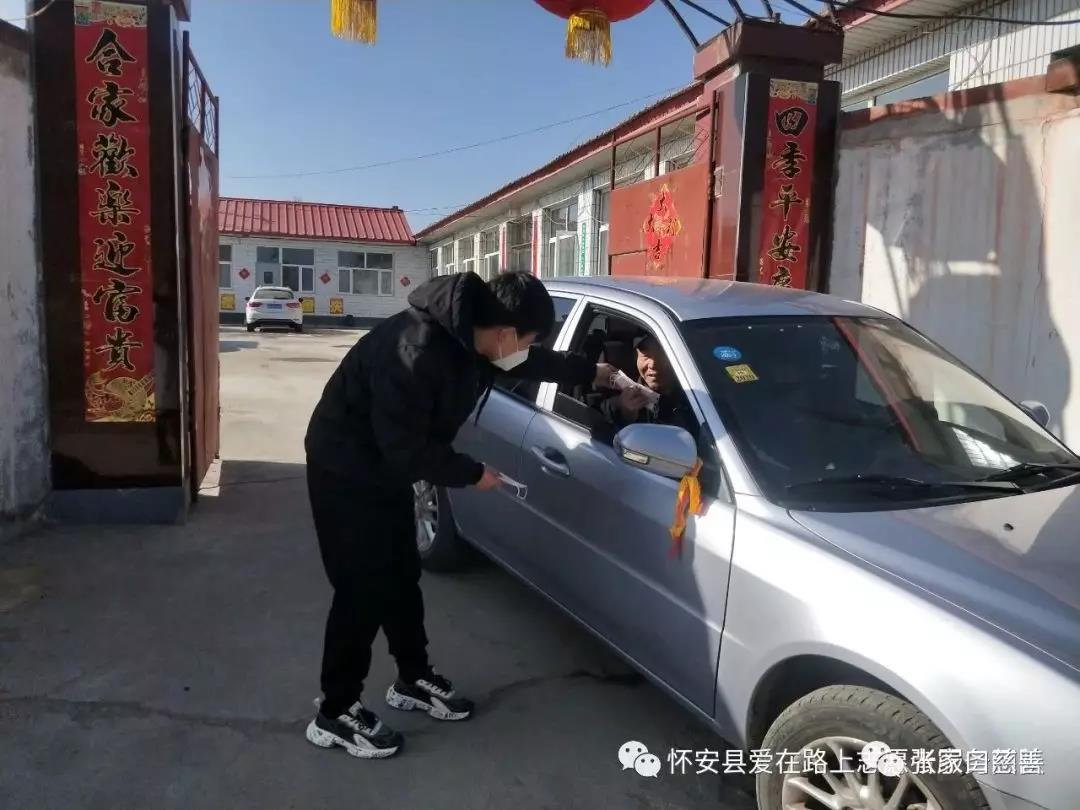 1月31日(正月初七),正值防控新型冠状病毒感染肺炎疫情的关键时期,河北张家口怀安县爱在路上志愿者服务团队在县委宣传部、团县委的号召下驱车共80多公里,走到基层为一线的人员送去防护用品以及消毒液。