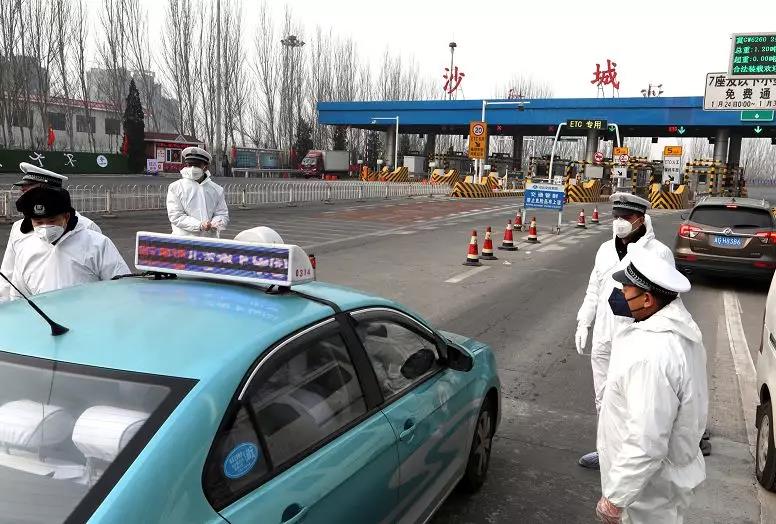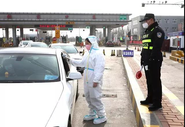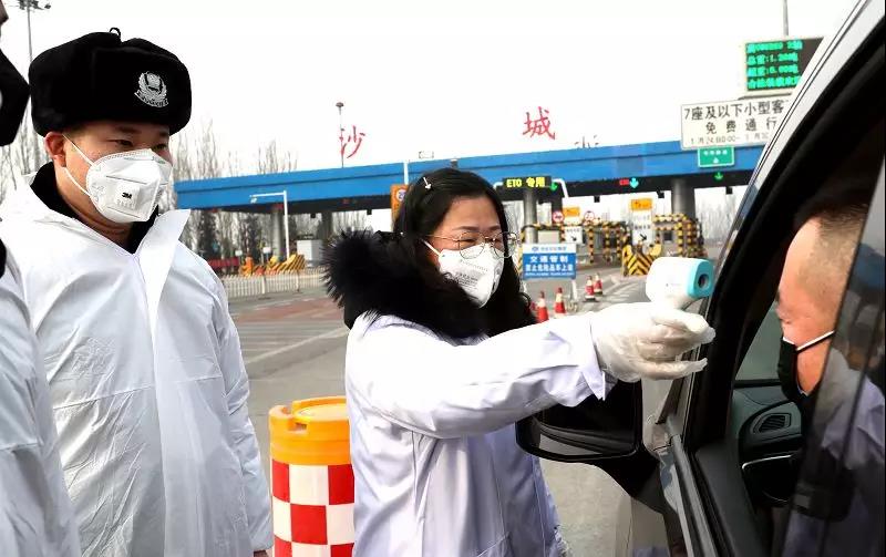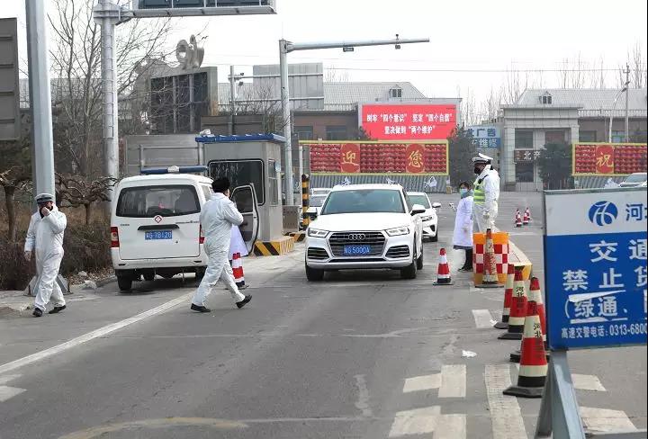 1月28日,怀来县公安交警、卫健局防疫人员在沙城高速路口对过往车辆人员进行体温检测。(张家口市新闻中心融媒体记者 武殿森 摄)