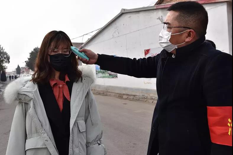 1月27日,宣化区河子西乡小东庄村工作人员对进村人员进行体温监测。张家口市宣化区启动农村突发公共卫生事件应急管理机制,各村安排专人24小时在村庄进出路口值守,对进出村人员进行严格的体温监测和登记,保障村民身体健康和生命安全。(张家口市新闻中心融媒体记者梁涛通讯员陈晓东 冯凯 摄)