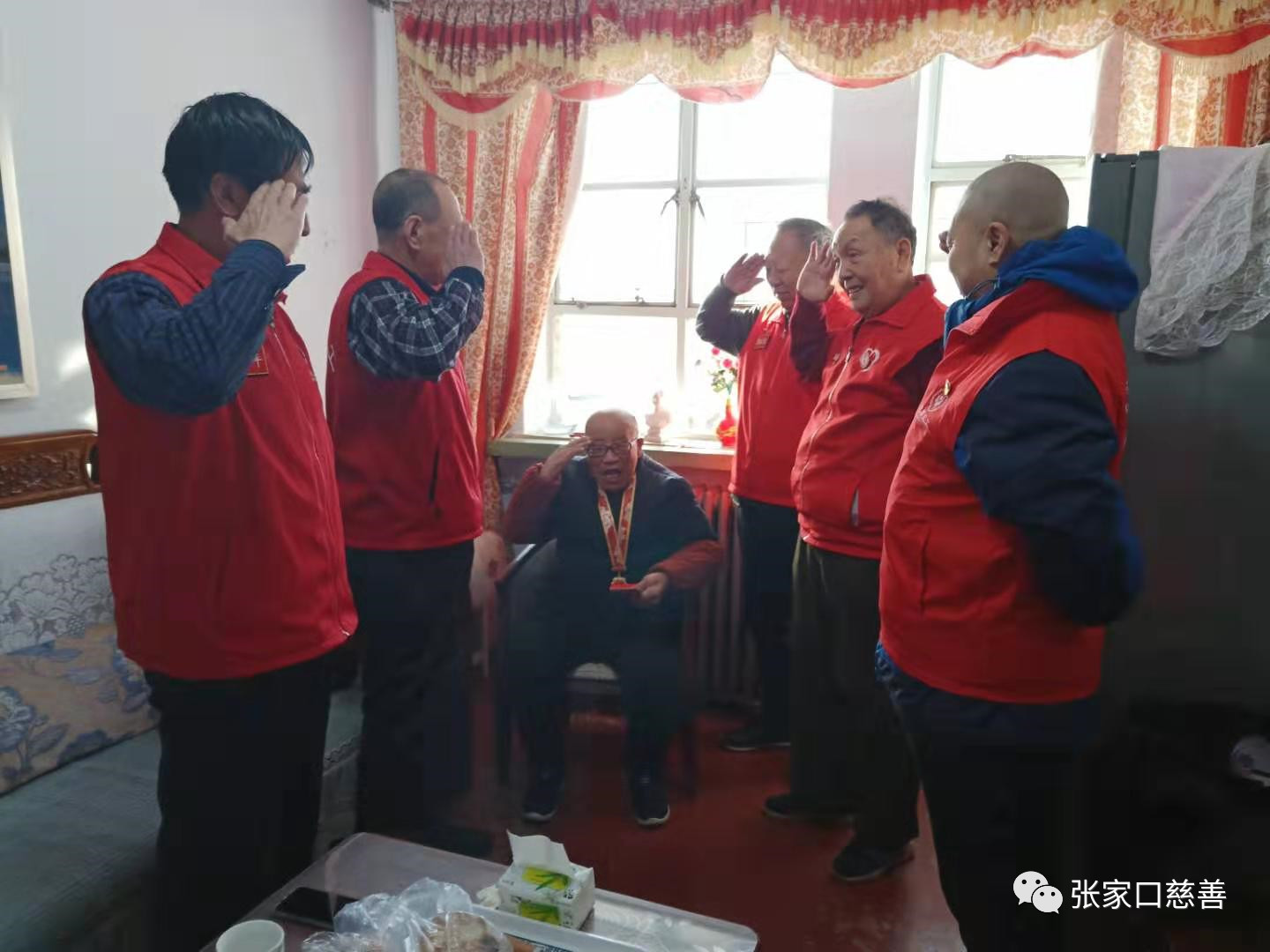 张家口慈善义工联合会阳光行关注历史志愿者团队慰问活动进行到第94站了,大家希望赶在春节前能为功勋老兵们送去全体志愿者对他们的关爱与祝福,让老兵们开开心心过大年。