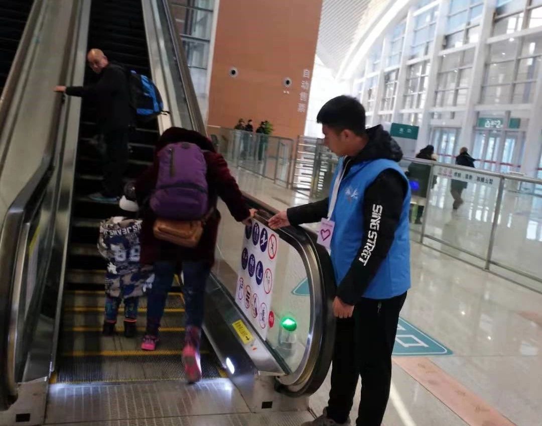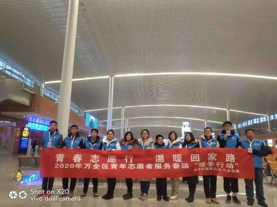 农历春节在我国是一年中最为隆重的传统节日,每当春节临近,无论什么困难都阻挡不了在外游子回家过年的步伐。2020年1月15日起,团区委、厚德万全公益促进会在张家口高铁站开展“暖冬行动 助力春运”志愿服务活动。 春节,有一种感情叫“回家 早上7点,志愿者们准时集合,经过岗前培训后,在售票厅、出站口、检票处、电梯口等站点开展志愿活动,引导旅客使用自助取票机,协助旅客按流程办理高铁票,指导旅客安全乘电梯、为需要帮助的旅客提行李、提供公交路线等,哪里有需要帮助的旅客,哪里就有志愿者忙碌的身影。