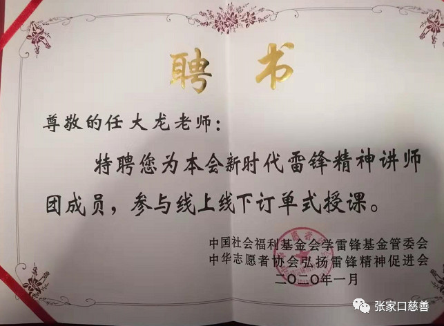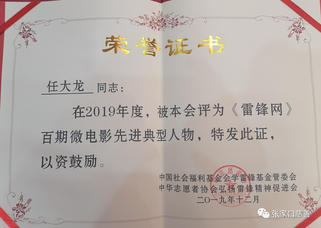 本次年会,任大龙又新添了二本荣誉证书和一本聘书,在2019年度评为《雷锋网》优秀通讯员、《雷锋网》百期微电影先进典型人物、2020光荣与梦想同行! |