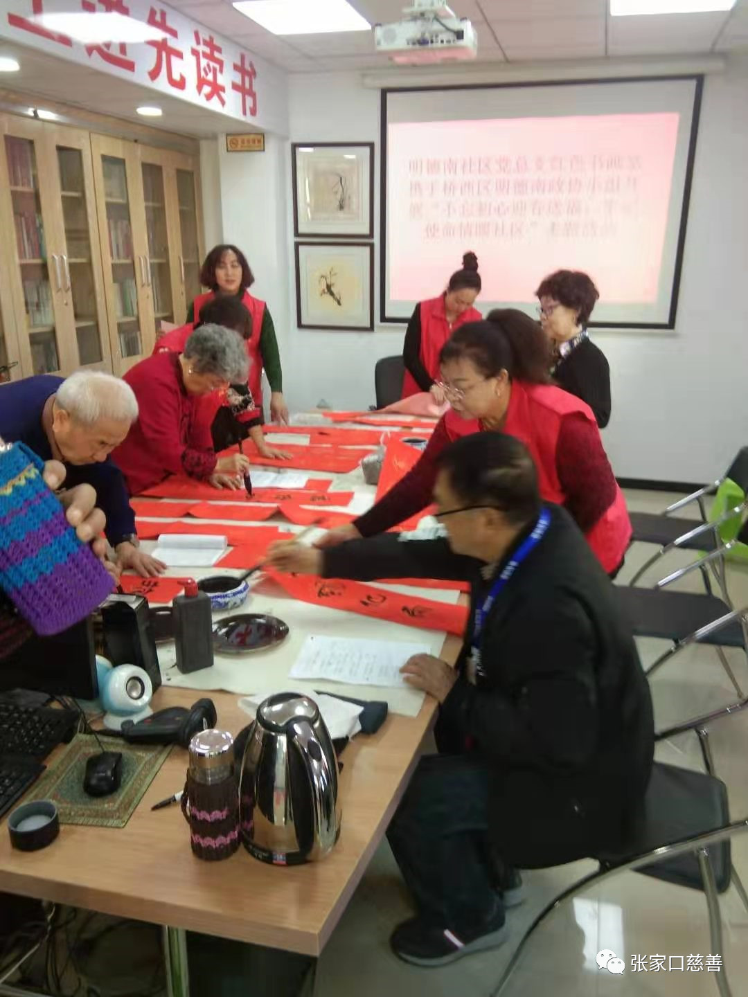 2019年1月13日上午9点,利他义工之家毛艳芳、郑兰枝、程凤华、王空雨、王焕珍一行五人携明德南社区展开了“不忘初心,慰问抗战老兵”,书写春联送春联,捷成养老院包饺子的活动。主要是配合市书法协会的领导们、大书法家们挥毫泼墨,协同书写新春对老党员、老红军,退伍军人新年祝福的喜庆春联;随后陪同明德南社区副书记张伟峰、桥西政协的领导一起看望、慰问了曾多次参加战役的89岁高龄的老红军路通夫妇,为其送去了新春的祝福,并聆听了他们战争岁月的感人故事。老红军的英雄事迹深受鼓舞,他们“不忘初心”的革命精神使我们震撼,从而更坚定了做公益事业,为人民服务的信念。