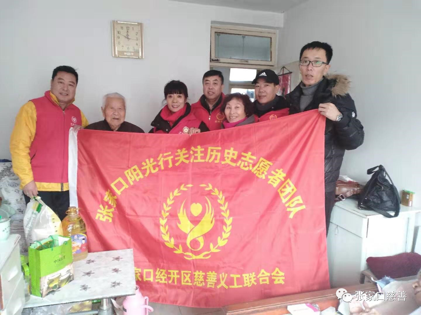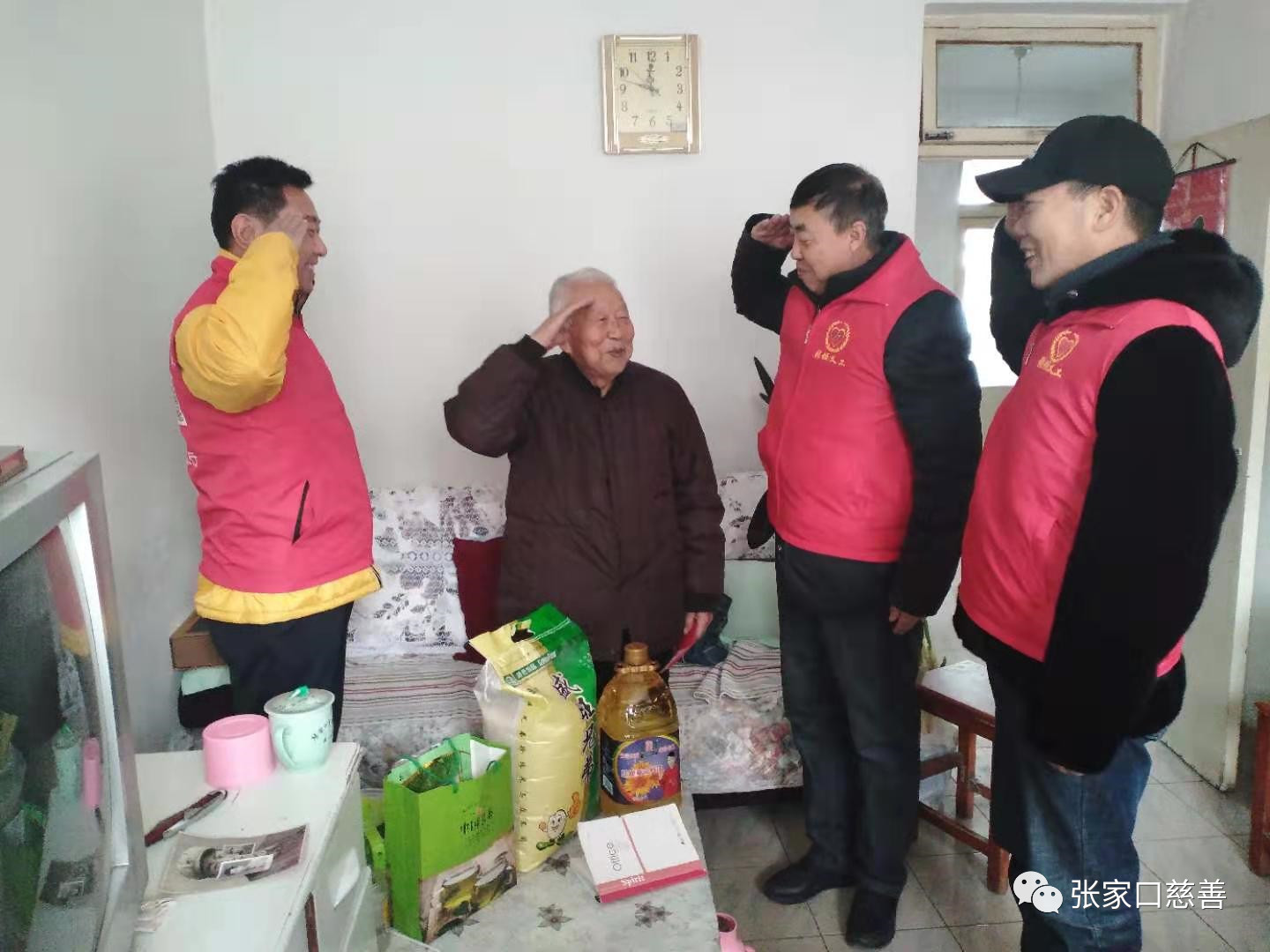 春节临近,天气更加寒冷,2020年1月13日,张家口慈善义工联合会阳光行关注历史志愿者团队桥西分队在领队郭宝茹的组织下,与利他义工之家的张相辉、杜同会、殷果花、何桂明五名志愿者,带着慰问品和全体志愿者的祝福,在元台子社区马彬的协助下,一同看望参加了解放战争的革命老兵宋贵发。