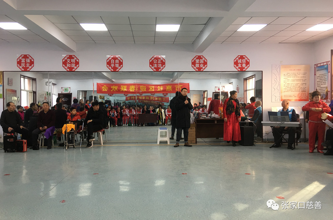 喜鹊枝头把喜报,四面八方舞友到,每逢冬味正浓时,便是舞友花枝俏,喜迎新春联欢会,载歌载舞真热闹。2020年1月8日下午三点,万嘉社区组织了迎新春文艺联欢会,桥东慈善义工联合会万嘉华庭舞蹈义工队队长冀生梅带领全体队员参加了这次非凡热闹的跨年会。社区主要领导,康副书记、朱副书记亲临现场,并为大家送上了新年祝福!参会人员有社区志愿者代表、居民代表、各舞队的演职人员约70余人。