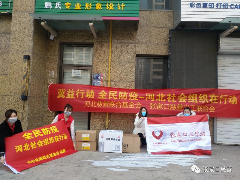 “共抗疫情 冀益行动”张家口慈善义工联合会发起筹款,2月4、5、6、7日四天为各区县乡村,各高等院校进行发放泡腾消毒片、连花清瘟胶囊,物资由各单位代发负责服务一线的人员。还有爱心志愿者奔赴各乡村各个路口为执勤人员发放。