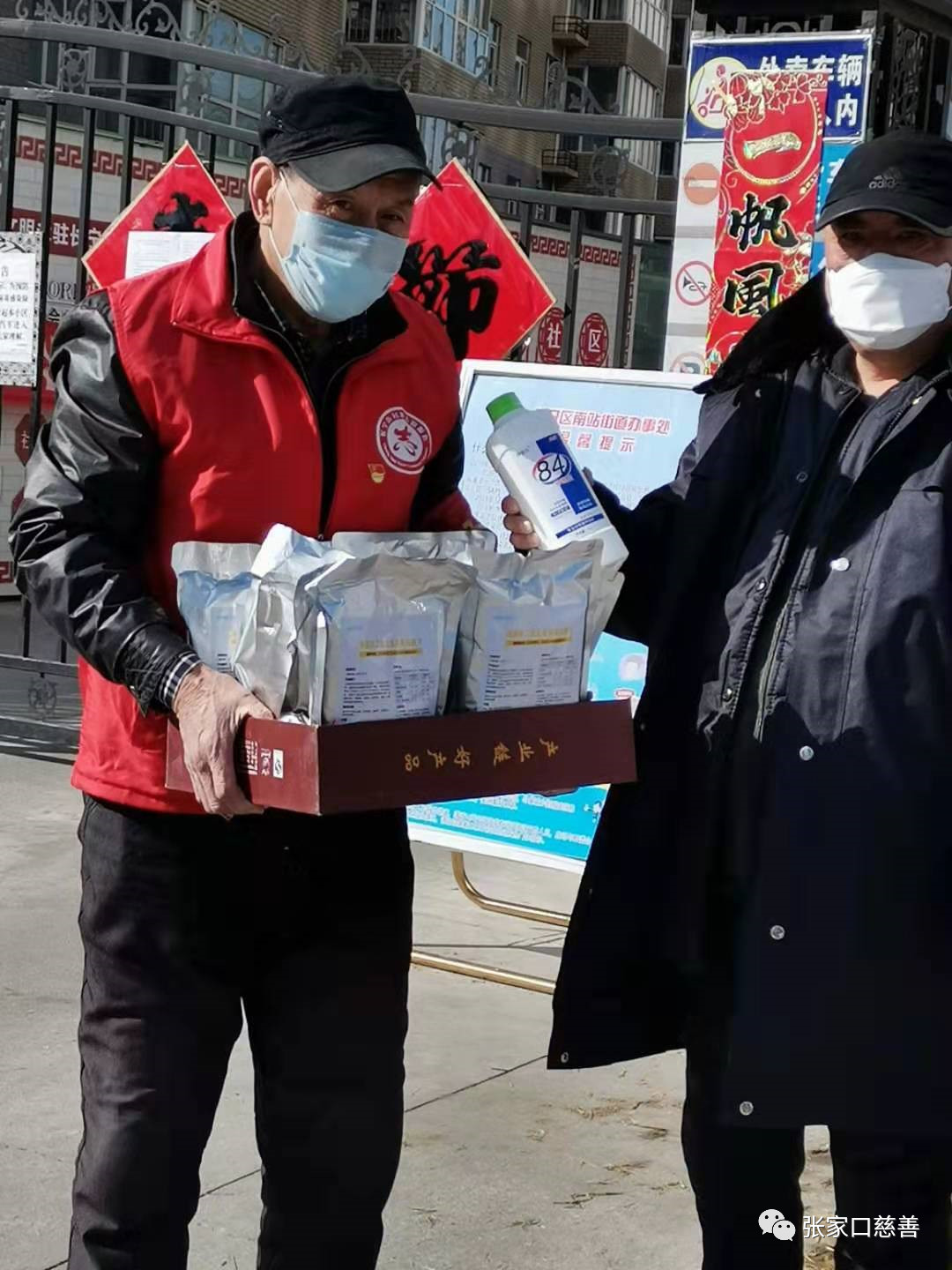 志愿者们将40箱《涛源牌二氧化氯清毒泡腾片》(共计600袋),3箱连花清瘟胶囊(共计1200盒),总价值47520元发放到经开区防疫一线工作人员手中,涉及到城管局、老鸦庄镇、沈家屯镇、姚家房镇、沙岭子镇、南站街道办事处、马路东街道办事处、派出所驻村工作队等多家单位,以确保他们平平安安地工作。