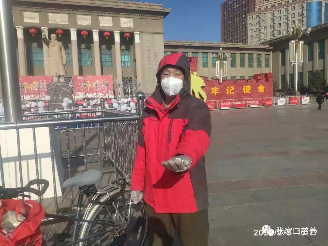 2020年2月9日上午,已经古稀之年的张家口长城护卫队队长李润才不畏严寒骑单车去展览馆,等待队员“自由马——小莫”从十几里地远的高新区送来消毒药片,好为张家口北面发放。为了避免规模聚集,发放分南、北两个地点。南面由副队长何大勇、崔振江负责,北面由李队长负责。张家口长城群里提前一天发送了领取时间、地点及领取人员接龙。并告知大家就近领取,提醒大家出门做好个人安全防护。队员们领取消毒药品后,感谢在疫情时期值守岗位的志愿者服务人员。感受到团队家人的温暖,感谢张家口慈善义工联合会这个为人民服务的大平台。