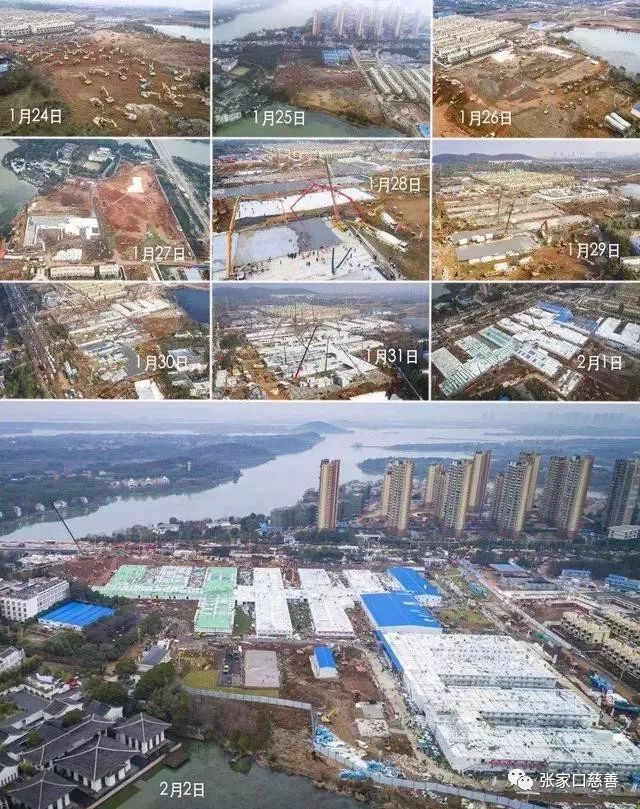2020年2月2日和2月5日,武汉火神山、雷神山两医院分别历时9天和11天建成。