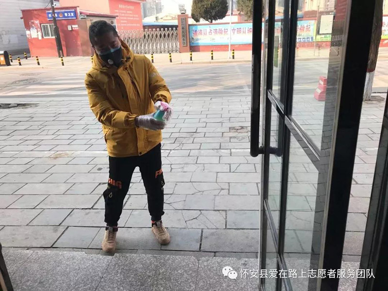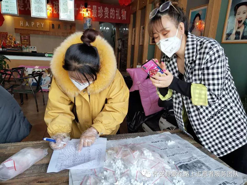 (对领取消毒泡腾片的志愿者进行体温监测和信息登记) 怀安县爱在路上情系抗疫一线 希望所有的志愿者,也要保护好我们自己,保护好家人!遵守市县疫情防控工作的整体要求,守护好我们的家园!武汉加油!张家口加油!怀安加油!志愿者们加油!