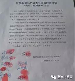 团队秘书处了解到张家口慈善义工联合会,在1月27日(大年初三),受市政府疫情防控工作领导小组委托就进入了工作岗位,负责疫情防控物资的应急采购工作,以保障医院、社区等一线部门的使用,联合会还在团队负责人群招募了三名志愿者协助物资的管理工作,在贾庆贺会长组织带领下,赵小军、李尚林、张连兵、李蓉萍连续作战一个多星期,为疫情防控物资采购做出了特殊贡献,并收集整理全市公益组织参与疫情防控的事迹,联系各大媒体进行宣传,以鼓舞广大市民防控信心,2月5号联合会工作人员到岗后,所有职员连续奋战在抗击疫情的一线,由于联合会往来人员、物资较多,无形中增加了可能被病毒感染的机会,联合会的工作人员到岗后,克服了恐惧心理,首先签订了志愿服务承诺书......不计报酬,不论生死,服从安排,努力工作……