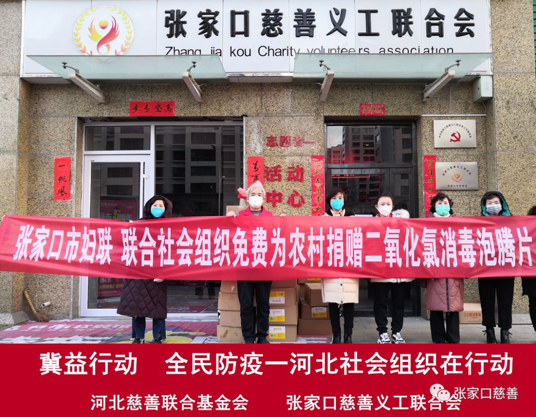 张家口市妇联携手张家口慈善义工联合会落地河北慈善联合基金会“冀益行动·全民防疫”项目,申请的泡腾片惠及张家口17个区县179个乡镇的1101村子上百万人民群众抗击疫情的防控。
