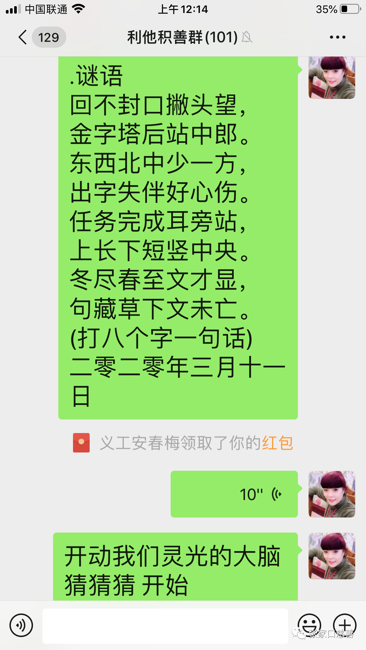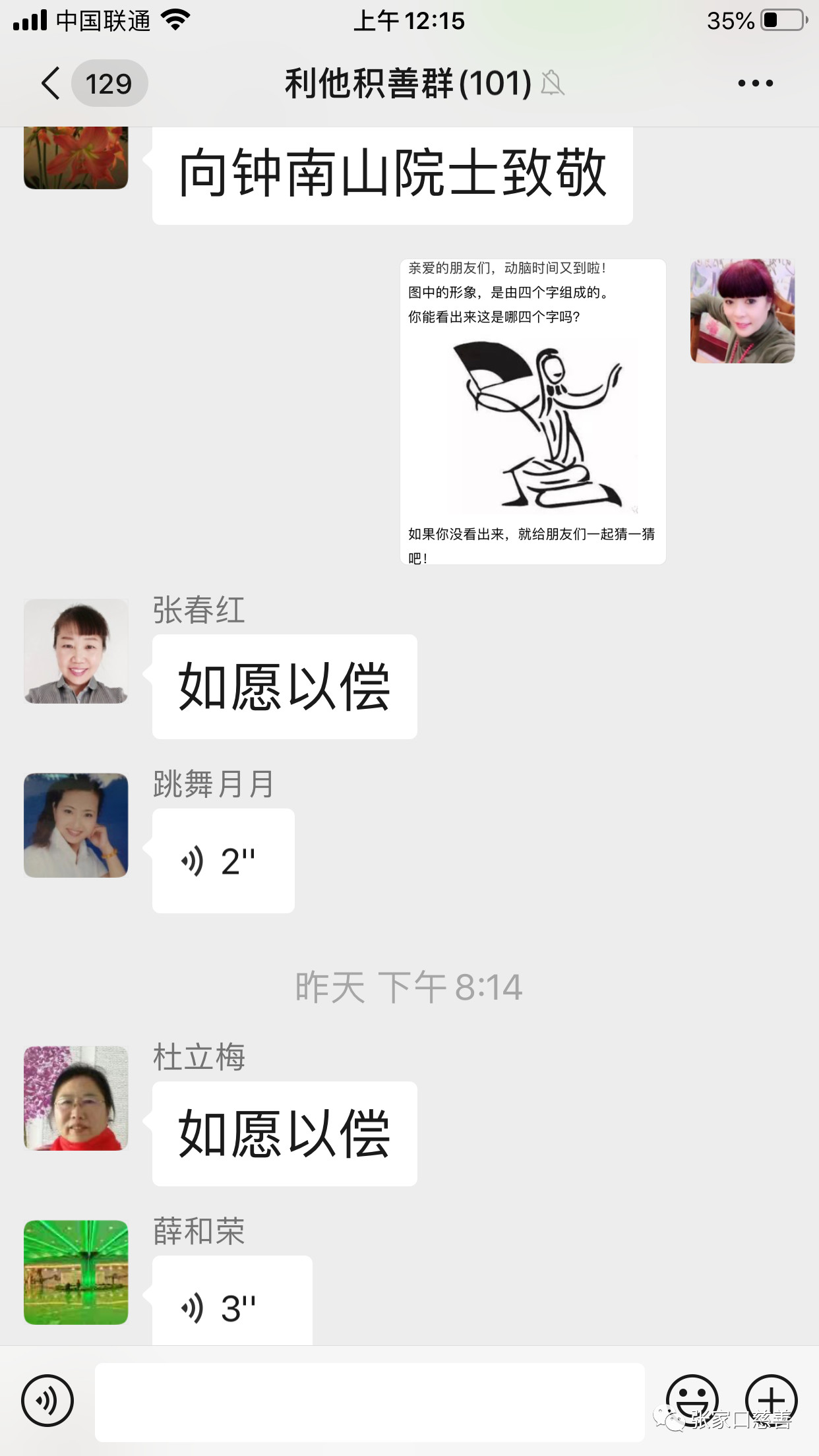 人们赞美春天,尽情地讴歌春天,确实,当大地回暖,千枝绽绿的时候,刚刚经历过严冬的万物,饱尝到春风的温暖,呈现出一派生机勃勃的景象,春天是个播种的季节。就是在这样春暖花开的季节里,利他义工之家开始播种了。从3月8日—12日五天的时间里,在利他义工之家的副队长郭宝茹的带领下,大家一起学习互动,首次空中课堂圆满结束了。