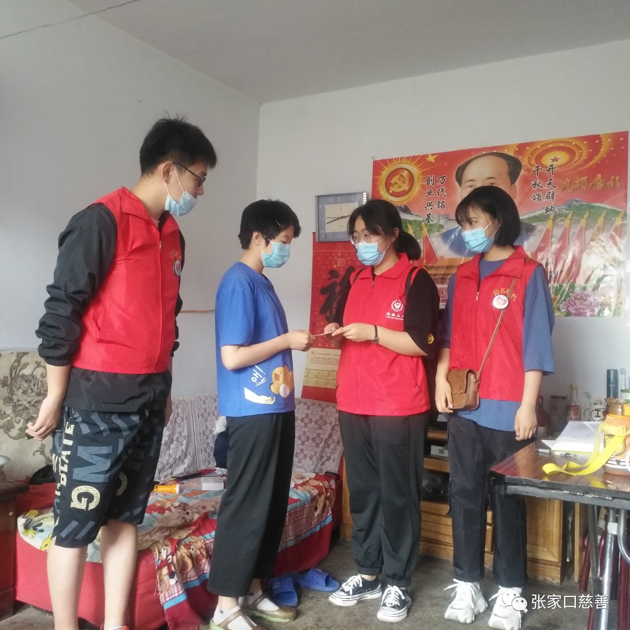 驱车半小时,志愿者们来到三十里外的小秦家。小秦正在进行网课考试。为了不影响小秦考试,志愿者等小秦考完试后,给她发了七月的助学金300元。在等待的过程中,志愿者们和小秦身患残疾的父亲,体弱多病的奶奶了解孩子最近的学习情况。得知小秦同学一直以来以认真的态度和不懈的努力抓紧学习,志愿者们倍感欣慰。小秦表示要以优异的成绩来回报这些关爱她的叔叔阿姨,热情的奶奶还为志愿者亲手摘下了自家种植的黄瓜给大家品尝 。