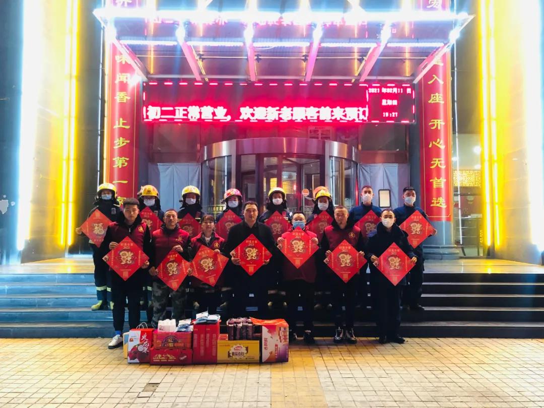 为响应中央文明办《关于在2021元旦春节期间开展志愿服务关爱行动的通知》,大力弘扬“奉献、友爱、互助、进步”的志愿精神,怀安县慈善义工联合会爱在路上志愿者服务团队开展了“我们的节日·春节”系列主题活动。 金鼠辞旧岁,福牛迎春来,为了让春节坚守一线的怀安县消防员能够感受社会大家庭的温暖,怀安义工在除夕夜为张家口消防救援怀安支队消防官兵们送去了保温杯、口罩、免洗消毒凝胶、奶茶、面包、水果等慰问品,向春节期间仍然坚守岗位的消防一线救援人员致以新春的祝福和诚挚的问候。