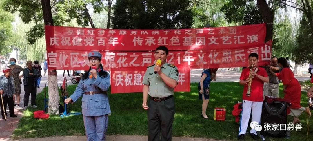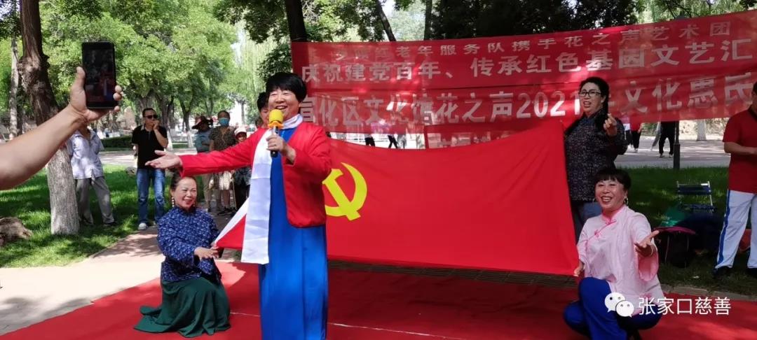 在我们伟大的中国共产党成立100周年来临前夕,为了庆祝这个普天同庆的日子,宣化慈善义工联合会携手花之声艺术团与6月30日上午,在宣化人民公园共同举行了《庆祝建党百年 · 传承红色基因文艺汇演》。
