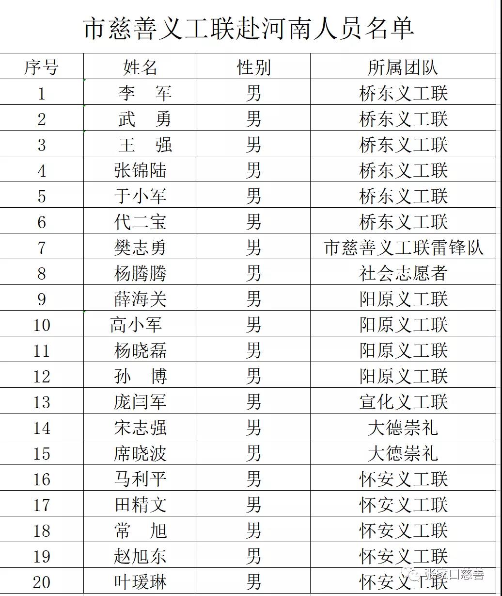 近日,河南等地持续遭遇强降雨,郑州等城市发生严重内涝,一些河流出现超警水位,个别水库溃坝,部分铁路停运、航班取消,造成重大人员伤亡和财产损失,防汛形势十分严峻。针对河南暴雨,张家口慈善义工联合会积极响应河北慈善联合基金会发起的“援豫防汛救灾行动”公益项目,已筹款达19720元。7月27日,市慈善义工联选派20名志愿者,前往急需灾后防疫消杀服务的河南郑州市中牟县、鹤壁市祁县等地。
