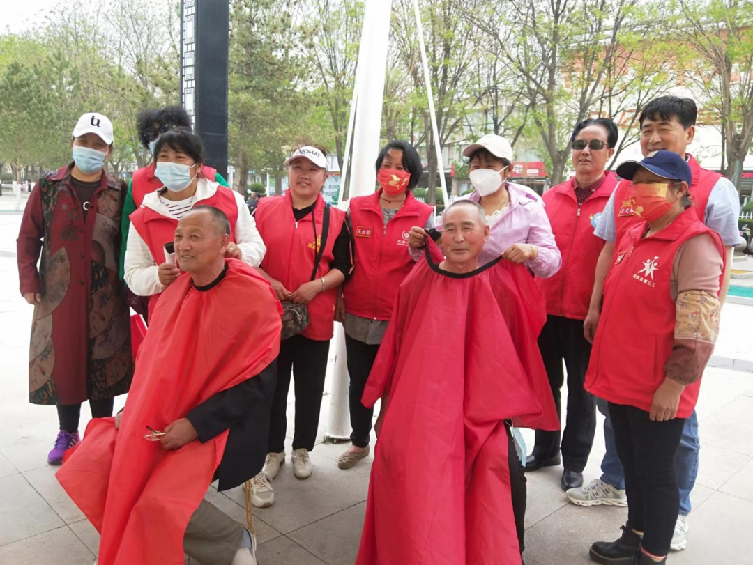 当日下午,志愿者们自发从家中出发,前往阳原泥河湾广场。队长吴桂荣带领队员们找到合适的理发地点,队员分工配合,职责明确。有的人组织人员,有的人理发,有的人清理场地,在分工配合下,为很多老人理了头发。在将近五点的时候与各位理发的老人亲密合影,圆满结束了一天的活动。