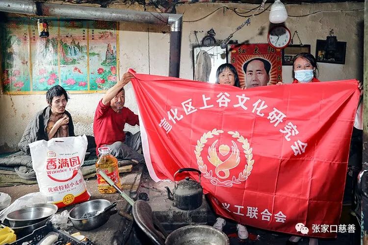 6月30日,宣化区上谷文化研究会会员代表走进春光乡大北村低保户张春家,送去了白面、食用油等生活必需品。