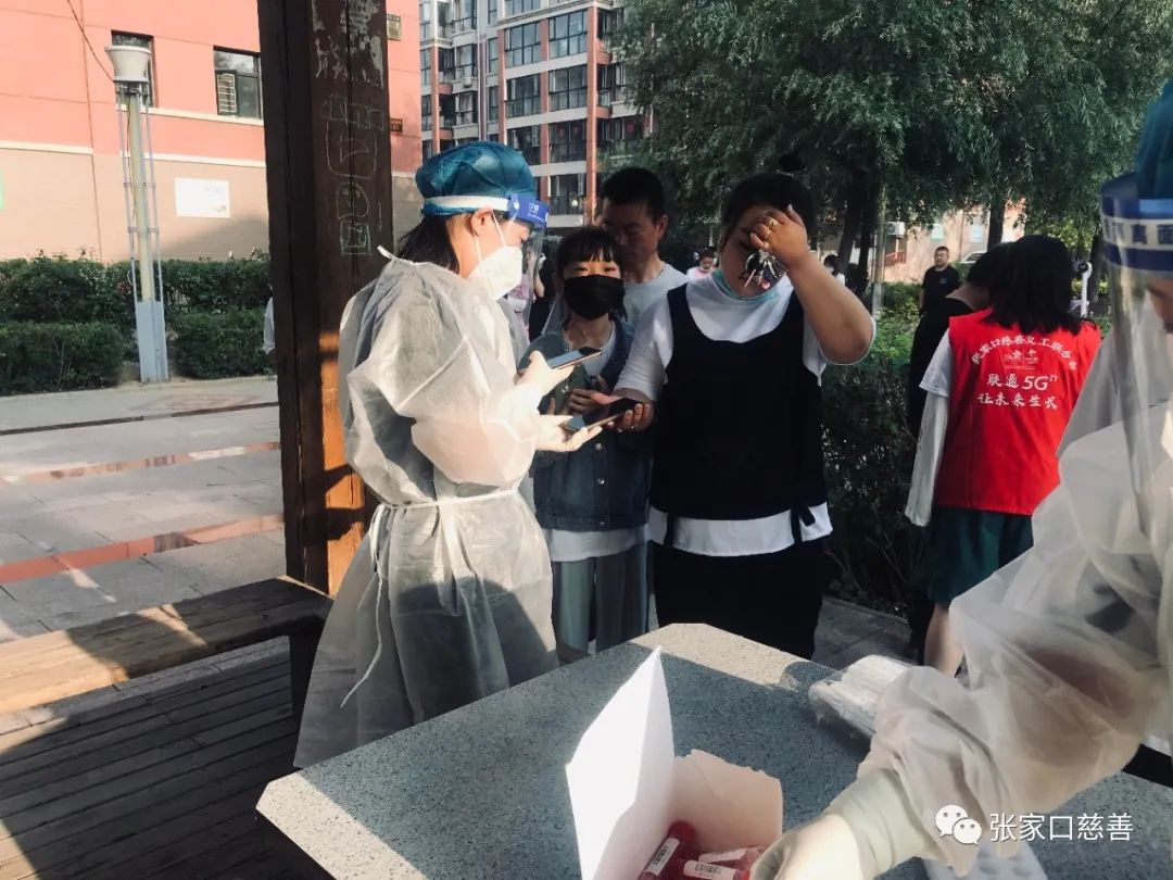 在弘城雅竹核酸采集点,泥河彩玉志愿者服务队队长吕志强一大早就带着志愿者们按时到达点位,穿着红色小马甲热心服务。志愿者们维护现场秩序,引导居民有序排队。居民还和志愿者聊天,讨论自家孩子的学习、升学问题,哪个学校好一些,还会讨论一些家常,一会儿的功夫志愿者就与小区居民熟悉了起来,好像本来就认识一样。志愿者们还耐心的为居民解决检测核酸遇到的实际问题,帮助他们进行信息登记,以确保信息准确。协助医务工作者清点棉签。在核酸检测的最后,医护工作者也为志愿者们做了核酸。烈日炎炎下,隔离服里的衣服已经浸透全身,是数不尽的汗水,但她们依旧坚守在自己的岗位上,为大家进行信息录入与核酸检测。
