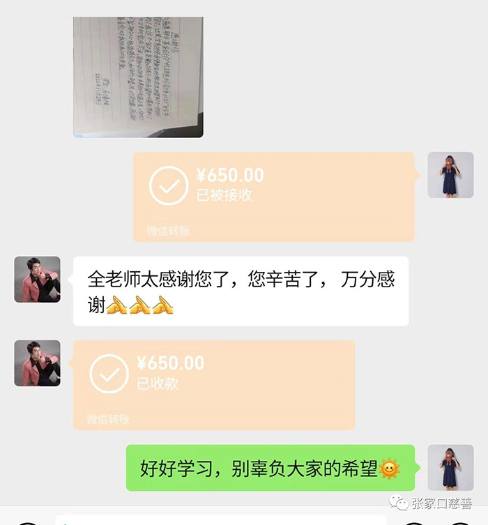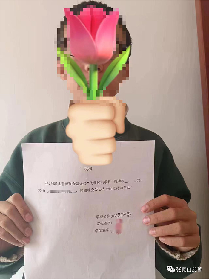 这是“代理爸妈项目”支助张家口市桥西区大境门小学的第三个贫困学生。学校的领导高度重视,联系班主任老师后,通过网络视频与家长进行了面对面访谈,非常感谢社会爱心人士的支持与帮助,让孩子更好的完成学业表示衷心感谢!再次感谢河北慈善联合基金会发起的“代理爸妈项目”,激动感恩交杂在一起,爸爸孩子相拥而泣,许下承诺,一定要好好学习,长大后报答社会。高博楠还亲笔写下了感谢信。