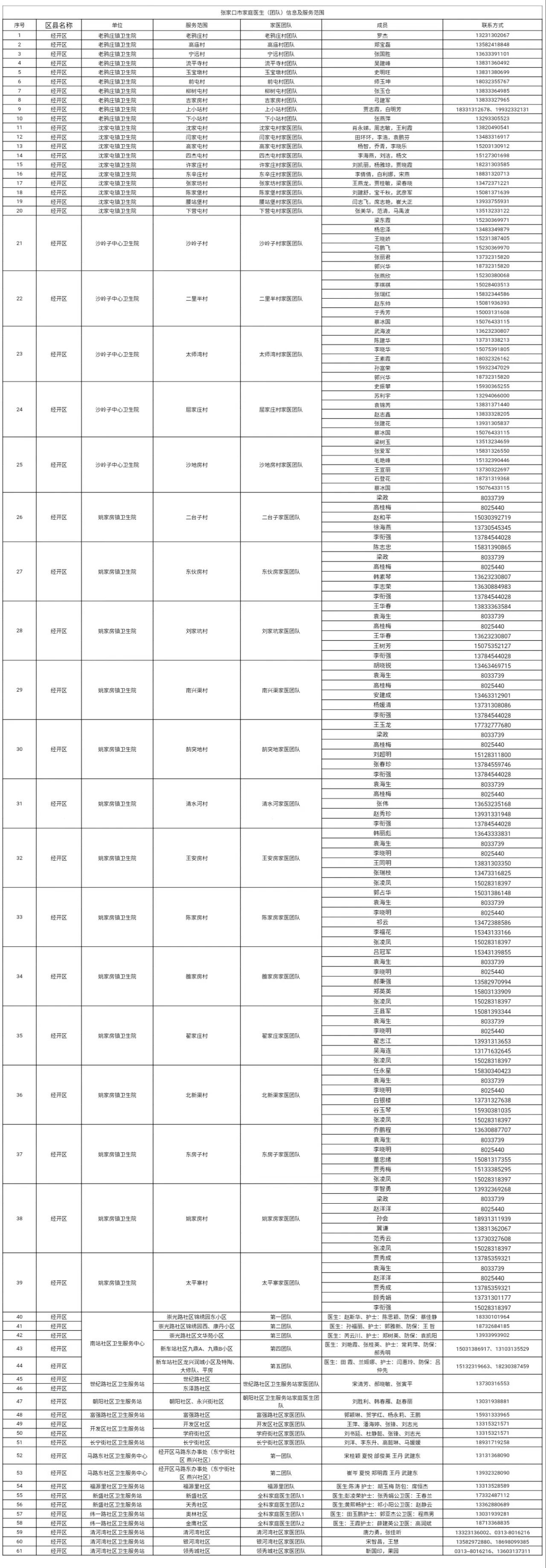 为更好的满足居民群众就近就医需要,现将我区家庭医生团队信息及服务范围予以公示,如出现发热、咳嗽等症状,居家治疗不见好转时,可联系相应的家庭医生团队,家庭医生将根据您的实际情况提供相应服务。