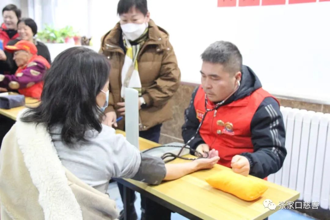 助残专委会副会长黄绍雷为大家进行外耳道清洗,检测师李娟为大家測听力。军医李书庭和全科医生马可可为大家測血压,听心脏,把脉,对数十名残障人士进行常规体检。冀惠仁、王振河、王立信、毛艳芳维护现场秩序,提供检测服务。这次活动为海豚家园的34名残障人士进行了体检。彰显着公益人对残障人士的关爱,体现了助残专委会的专业特性。