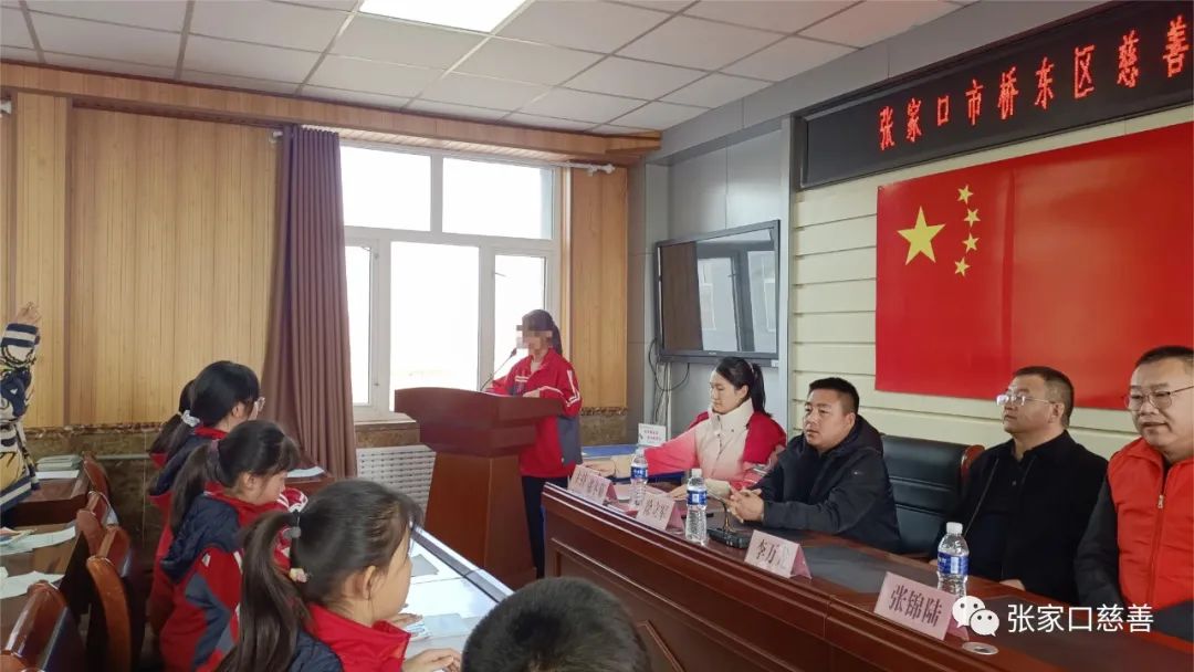 张家口市桥东区慈善义工联合会同心携手为爱传递义工队3月14日上午来到沽源县九连城镇寄宿制学校执行了“代理爸妈”助学金发放活动。张家口市桥东区慈善义工联合会在常务副会长张锦陆,理事武勇,同心携手为爱传递义工队志愿者罗彩霞、孙建虎、王军飞、米永霞、杨秀梅、张海军、姚俊丽参加了本次活动。