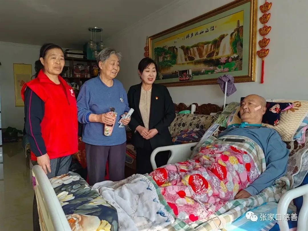 3月20日下午刘俊琴带领志愿者高家红,杨春娣等代表日间照料中心来到王建都家,并为他带来了牙膏洗发水香皂等精美的礼品。王建都72岁,党员,十年前的一次意外让他高位截瘫,老伴身体也不好,生活中存在很多困难,刘俊琴和其家属亲切的进行交流,老伴姓闫,闫阿姨十多年了不离不弃的照顾高位截瘫的老伴令人敬佩,刘俊琴详细询问了他日常生活中的困难,并帮助老人查看家用电器是否存在安全隐患,打扫卫生随手带走垃圾等。