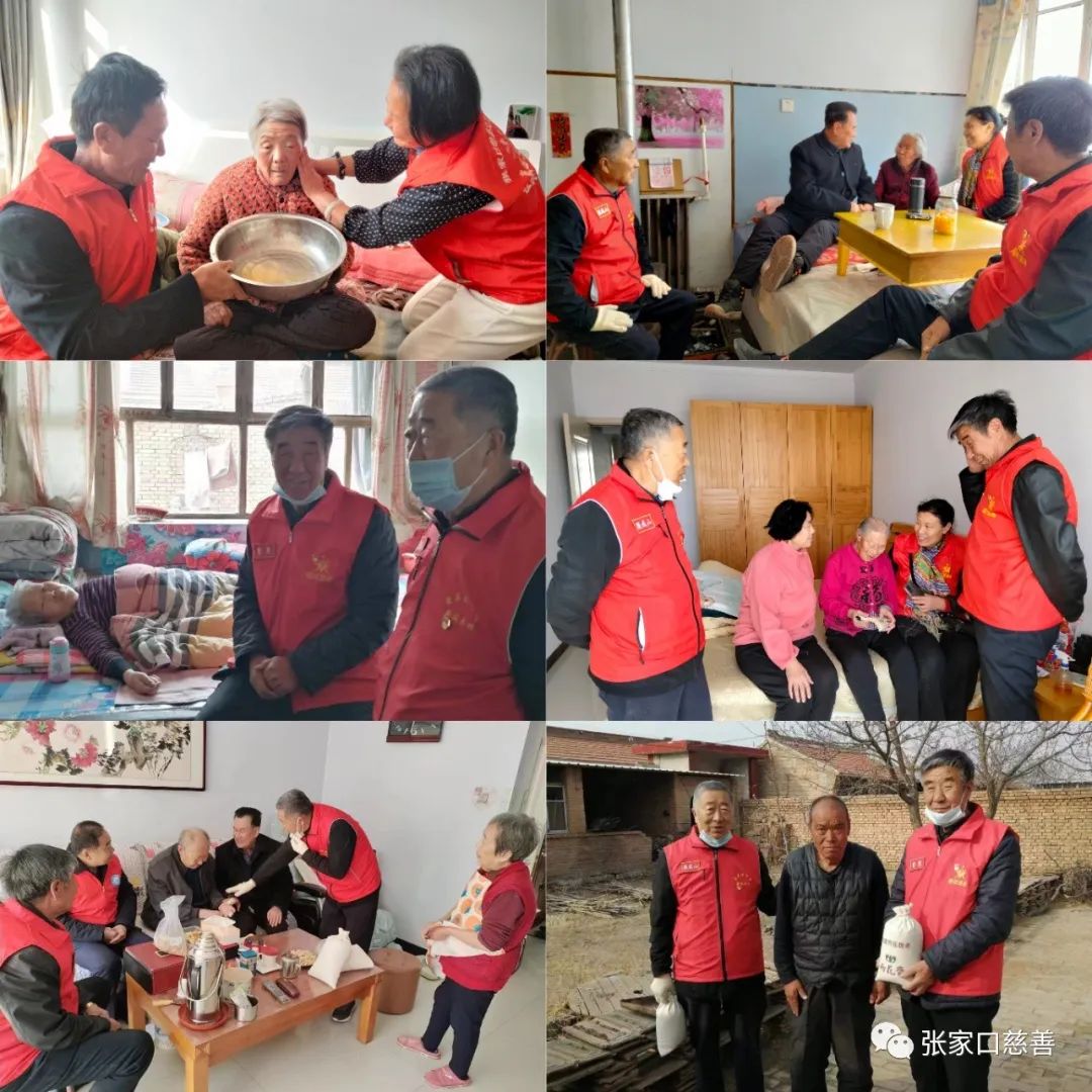 在贾书记的带领下,先后看望了空巢老人张宝军的岳母田妈妈,老妈妈儿子多年前就不知去向,唯一的女儿也在前年突然去世,很多年前又与丈夫离婚,现在无依无靠,每日以泪洗面,这位老人的信息是西城镇南街社区赵书记提供的。又去看望我们传统文化队志愿者王秀兰的母亲,也是鲍政委的岳母,老妈妈今年92岁了在王秀兰大姐的细心照顾下,老人身体很好,还有信仰,每天念佛。老军人老党员杨直峰,今年92岁了,老人精神很好,他是我们传统文化队志愿者杨直云的哥哥,老人一直在县武装部和西城镇工作。90岁的老党员张桂莲是老一辈的妇联干部。86岁的老干部孙老夫妇都是救死扶伤的医生,后来做到了院长,是1963年从沧州医专毕业一起分配到阳原服务,一待就是60多年,说起化稍营医院著名中医贾财林大夫,还给马占海看过病,医德高尚。88岁的徐老师是在揣骨疃镇从事教书育人事业,他也是贾宪书记的老师,他还是阳原慈善义工联合会副秘书长翟秀霞的公公,徐老师特别健谈非常高兴。70岁的李明,患有脑梗等基础疾病,曾经是我们传统文化的义工,他现在一个人生活,也是实质意义上的空巢老人,儿女连过年都不回来。86岁李振文校长的母亲,妈妈精神很好,养育有多个儿子,都很有出息,李振文校长还是我们雨花敬老中心的发起人之一,老妈妈多年前就和鲍政委认识,记性很好,还记着小关,就是关键。通过本次活动,每一名党员和志愿者都收获满满,送出去的是爱收获的是幸福,大家一致认为这次活动非常有意义,定期去看望老人们非常好,老人是宝!也有遗憾,我们经常服务看望的黄粮坡106岁老人,在年前因为疫情已经离开了我们,志愿者张文林的母亲也刚刚离去,就没有看到。