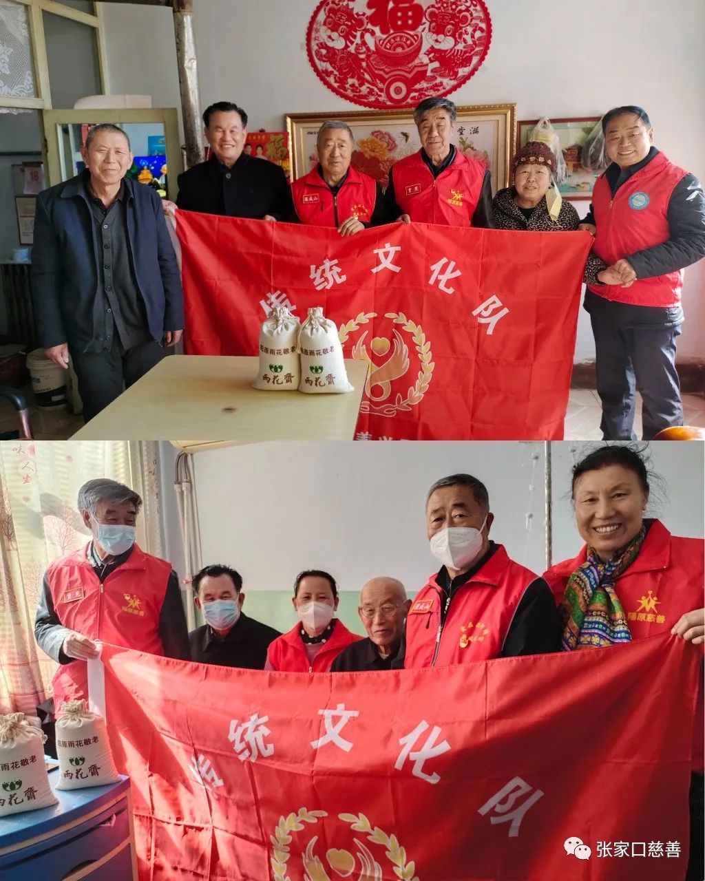 为了响应张家口慈善义工联合会党委的学雷锋月倡议,第十七党支部书记贾宪带领传统文化队和雷锋理发队部分党员和志愿者,从3月18日开始,利用四个上午的时间,先后看望92岁老军人杨直峰、90岁老党员张桂莲、88岁老教师徐老师、92岁王老妈妈、86岁老干部孙老夫妇等34户老人,送去了去年大家在雨花公益田里种植的小米和黑豆,以及满满的愛。