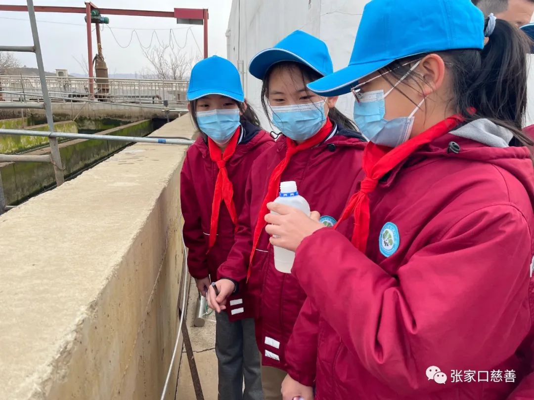 走进张家口润泽供排水有限责任公司,杜经理把丰富的专业知识转化成通俗易懂、生动有趣的语言向队员们详细介绍了污水处理的先进工艺,队员们听得津津有味,连连赞叹。学习了污水净化的理论知识之后,大家参观了集水井、生化池、粗格栅、细格栅、沉砂池、二沉池、污泥泵站、消毒池、标准排放口……,让队员们实地探究了污水净化的过程。