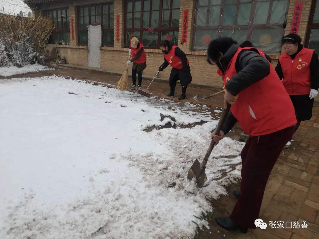 3月25日一大早,队员们早早集合在队部,为今天慰问老兵家属做准备,因为昨夜下起了大雪,今天早上白茫茫的一片。团队助理鲁桂珍带领王彦林、孙桂云等八位志愿者来到贺玉珍老人家院子里为老人扫除了积雪。大家一同与老人聊天并了解老人生活情况。当志愿者把大家筹钱为老人购买的白面、大米送到老人手中时,老人家热泪盈眶,感激之情难以言表!