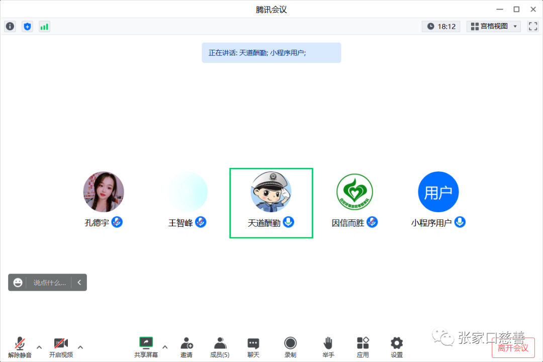2023年4月11日上午9:30,第59届轮值委员会第3次会议以线上腾讯会议方式召开。参加会议的有第59届轮值会长田精文,白鹭环保志愿者服务队队长樊志霞、宣化区康水湾志愿服务队队长王智峰、映山红舞蹈义工队队长武程花,会议由田精文会长主持并进行开场讲话。
