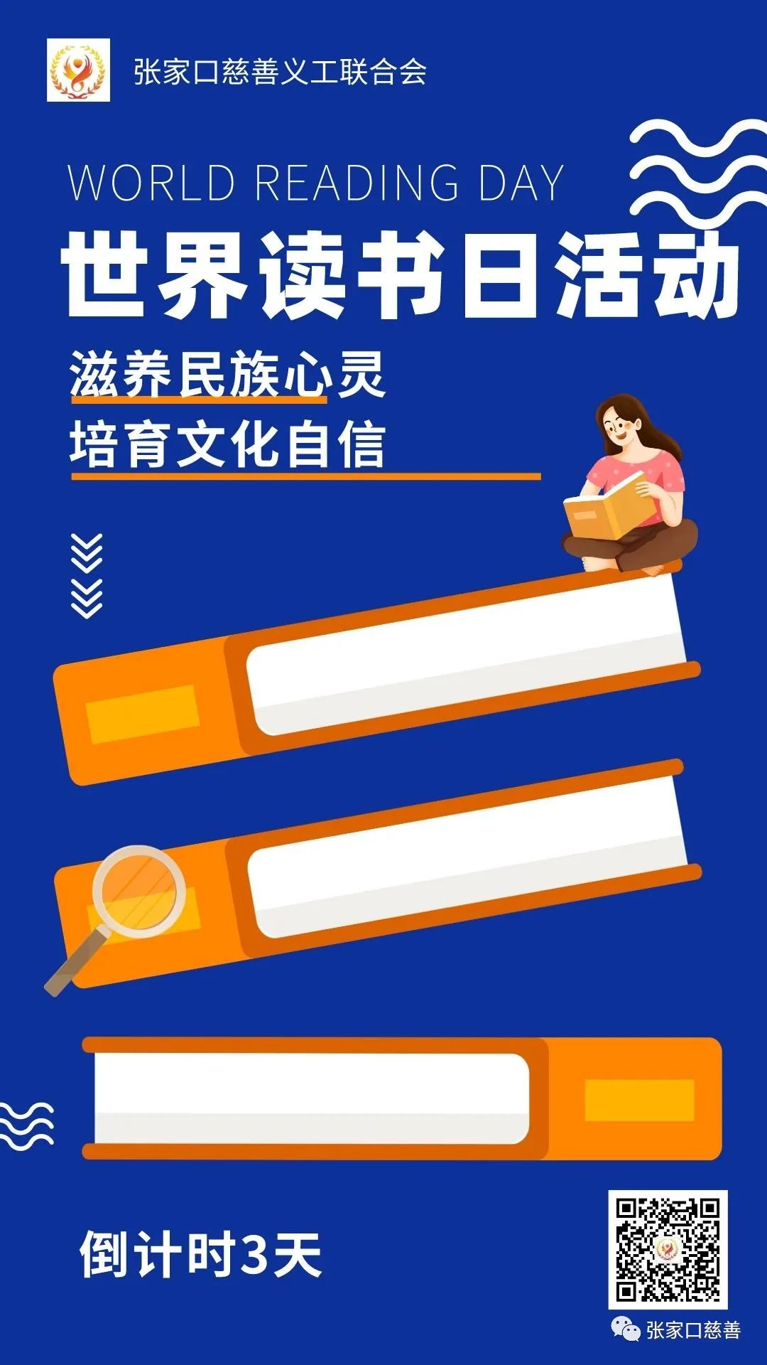 各区县义工联、各专委会、各团队: 以4.23世界读书日为契机,张家口慈善义工联合会联合张家口市图书馆,开展“滋养民族心灵 培育文化自信”世界读书日活动,组织广大志愿者共庆读书日,分享阅读的快乐,探讨阅读的心得,现将活动有关事项通知如下: