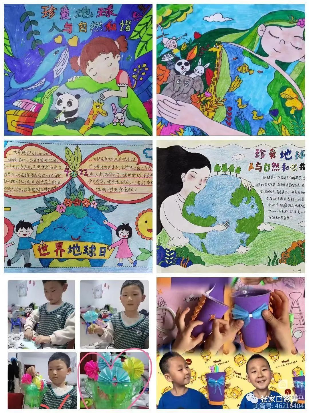 通过开展主题班队会、绘制一幅幅精美的绘画、手抄报、书写心得体会、悬挂绿色宣传标语以及在校外发放宣传资料等一系列丰富多彩的主题教育活动。在孩子们幼小的心灵播种下爱地球的种子,不但增强同学们的环保意识,还倡导废旧物品再利用的生活理念,还能培养同学们动手、动脑、动脚能力、创造能力和想象能力更需要长期的培养,亲近自然,保护自然,尊崇自然是我们的责任和义务,懂得废旧物品利用的价值,时刻保持一颗良善友爱的心,善待地球,就是善待我们人类自己!让我们爱护身边每一棵绿树,保护生命共同体,珍惜头顶那一片蓝天,善待大地上的每一条河流。让我们节约资源、保护环境,做保护地球的小主人,成为“绿色生活”的践行者!