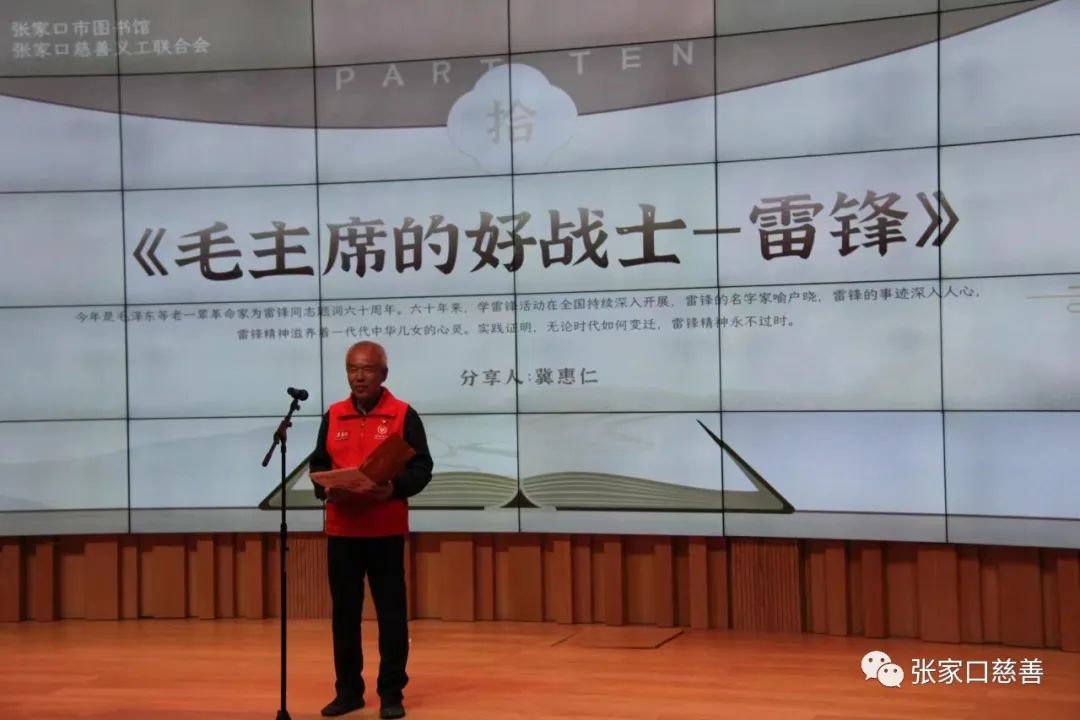 在读书日到来之际,由北京市石景山区图书馆、天津市河北区图书馆、天津市南开区图书馆、河北省张家口市图书馆主办的,世界读书日系列活动,分别在北京、天津、张家口分会场连线举行。福德仁爱公益队队长毛艳芳带队参加了这次活动。福德仁爱公益队队员整装待发这次活动的主题是:“滋养民族心灵,培育文化自信”。分享会上有中央电视台在上世纪八十年代热播的电视纪录片《话说长江》主持人陈铎老师做了读书分享,讲述了拍摄《话说长江》的动人故事,讲述了长江沿线的风土人情。《话说长江》的负责人李老师分享了四十年前拍摄电视片《话说长江》的前前后后。张家口慈善义工联合会组织了各团队参加了这次活动。天津市河北区图书馆推荐的两位小朋友进行了读书分享。天津市南开区小朋友进行了读书分享。河北省张家口市图书馆表演了朗诵《学习二十大,代代传书香》《美丽中国》。分享会现场党支部书记冀惠仁读书分享福德仁爱公益队党支部书记冀惠仁上台分享发言。福德仁爱公益队摄影师王立信为这次活动进行了拍摄。周中华为这次活动拍摄并制作了活动的短视频,及时进行了上传和共享。福德仁爱公益队图书馆合影编辑:周中华摄影:王立信审核:毛艳芳来源:福德仁爱公益队