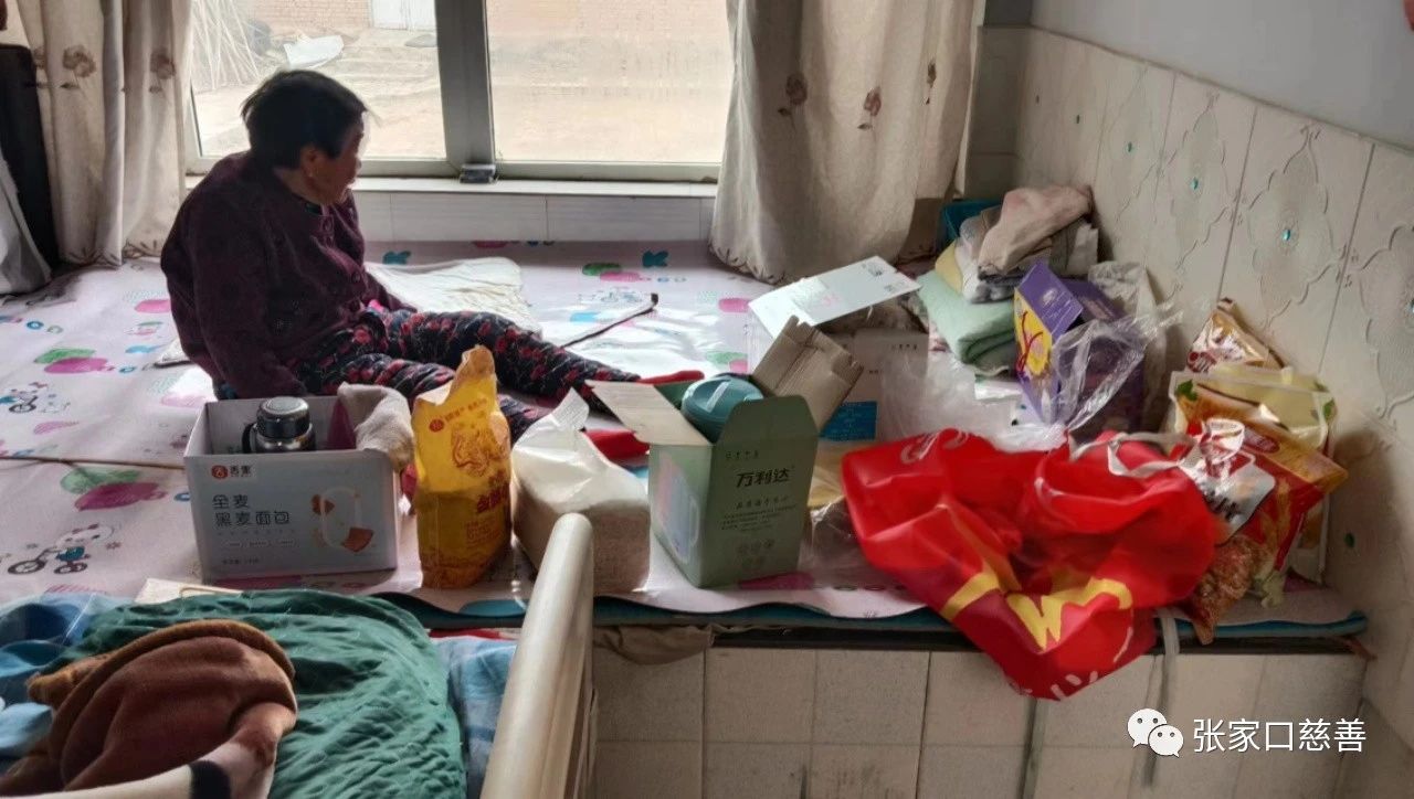 刘玉莲老人和善慈祥像个小孩,老伴去世多年,由儿子仲常山照顾生活。老人现在身体有疾病,腿多年前骨折,一直没有啥好转不能下地,还患有阿尔兹海默症。王文顺把阳慈善联分配的物品向老人的儿子仲常山一一做了介绍,并嘱咐他要照顾好自己的母亲,这些慰问品是社会爱心组织对困难人群的一份关怀。仲常山激动的向王文顺、刘忠两位志愿者说着感谢的话,感谢共产党,感谢现在的社会真是好,感谢两位志愿者不辞辛苦,放下家事一路远程来关心我的母亲!三人暖暖地聊天,好比亲人一家亲的幸福感。
