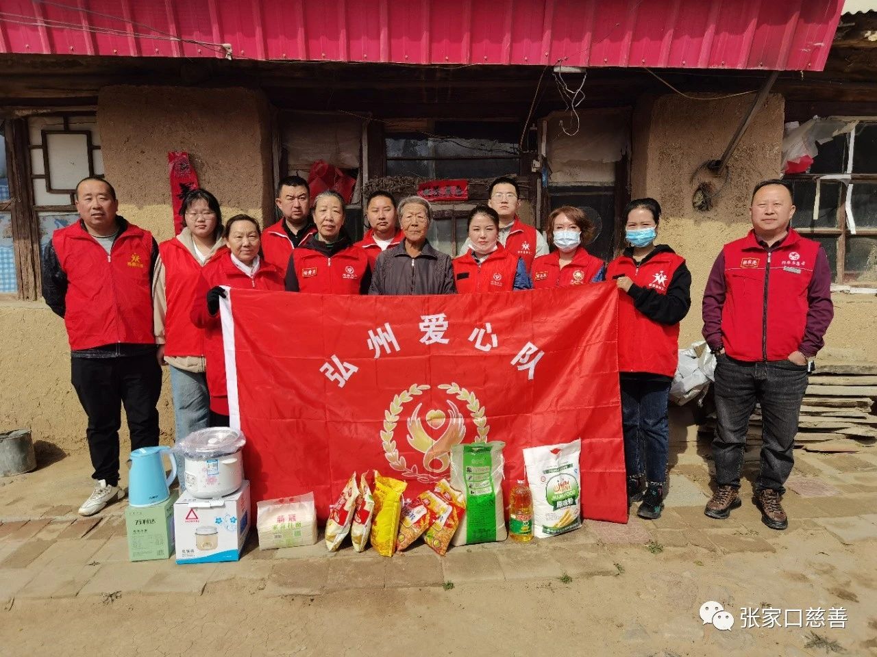 4月26日上午九时,弘州爱心团队由队长张爱生带队,郭海龙、郭志英、李亚茹、王芳、刘会兰、贺丕勇、任秀兰与东方团队队长杨东亮及几位队员一起下乡,为东堡乡东堡村患病孤寡老人贺玉枝送去早已准备好的慰问品。其中河慈联提供:小米、麦片、挂面、豆奶粉、电水壶、电饭煲。团队提供:大米、白面、麻油。