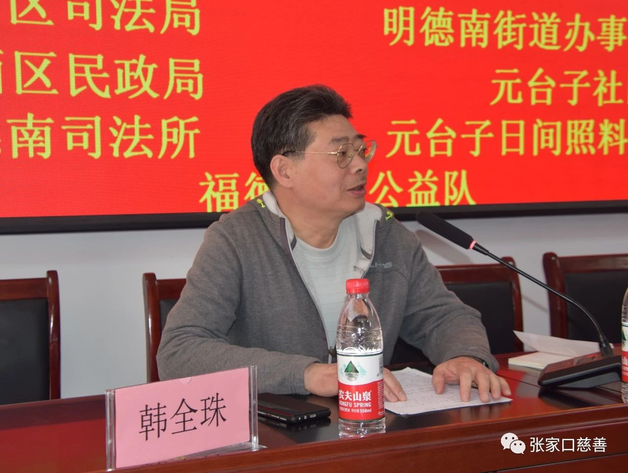 福德仁爱公益队为活动演出了法律知识的小品 在活动中,桥西区司法局为元台子社区法律援助宣传站揭牌。并且由法律专家为大家上了一堂法律知识课,希望大家更多了解国家的法律法规,保护好老年人。让更多志愿者了解法律法规,服务于老年人。